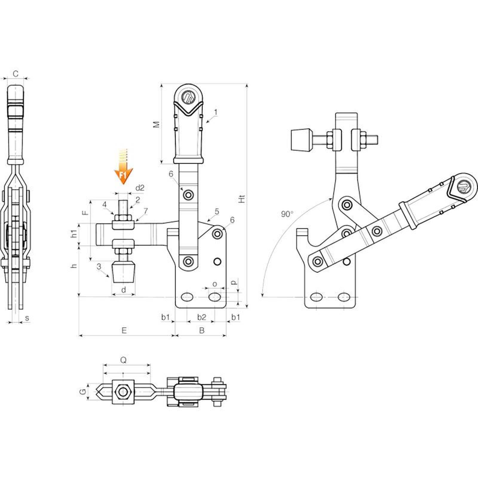 | Code | art. | F1 (Kg) | B | C | E | F | G | Ht | Q | M | d | d2 | o | p | b1 | b2 | h | h1 | s | Weight (g) |