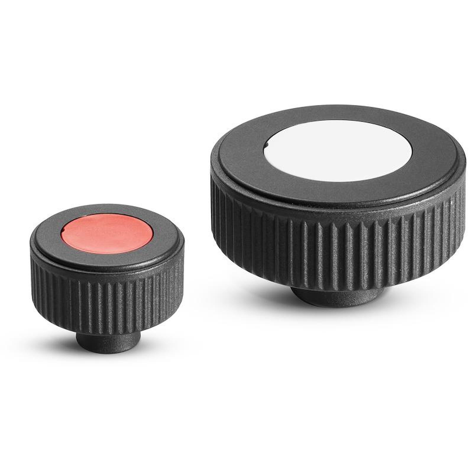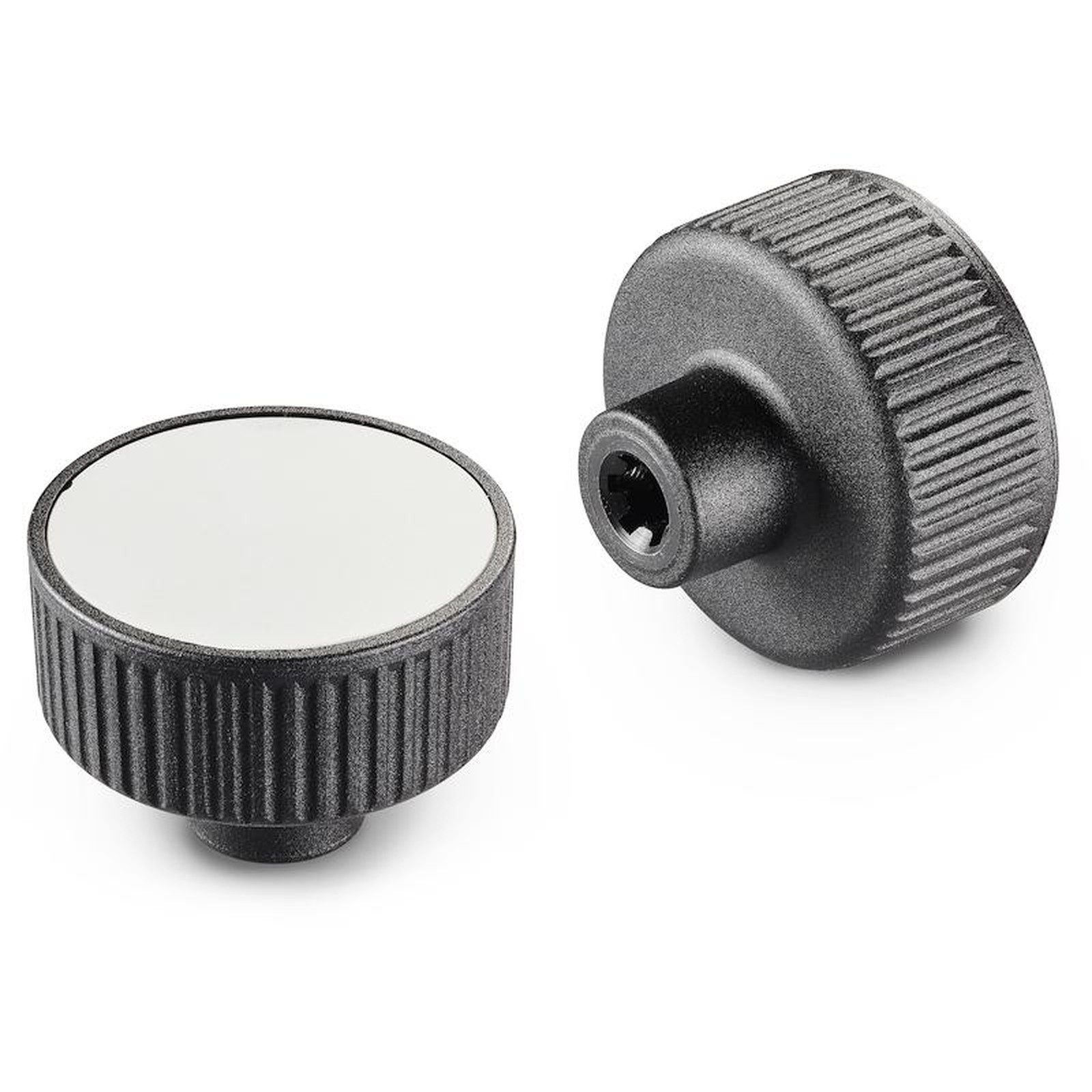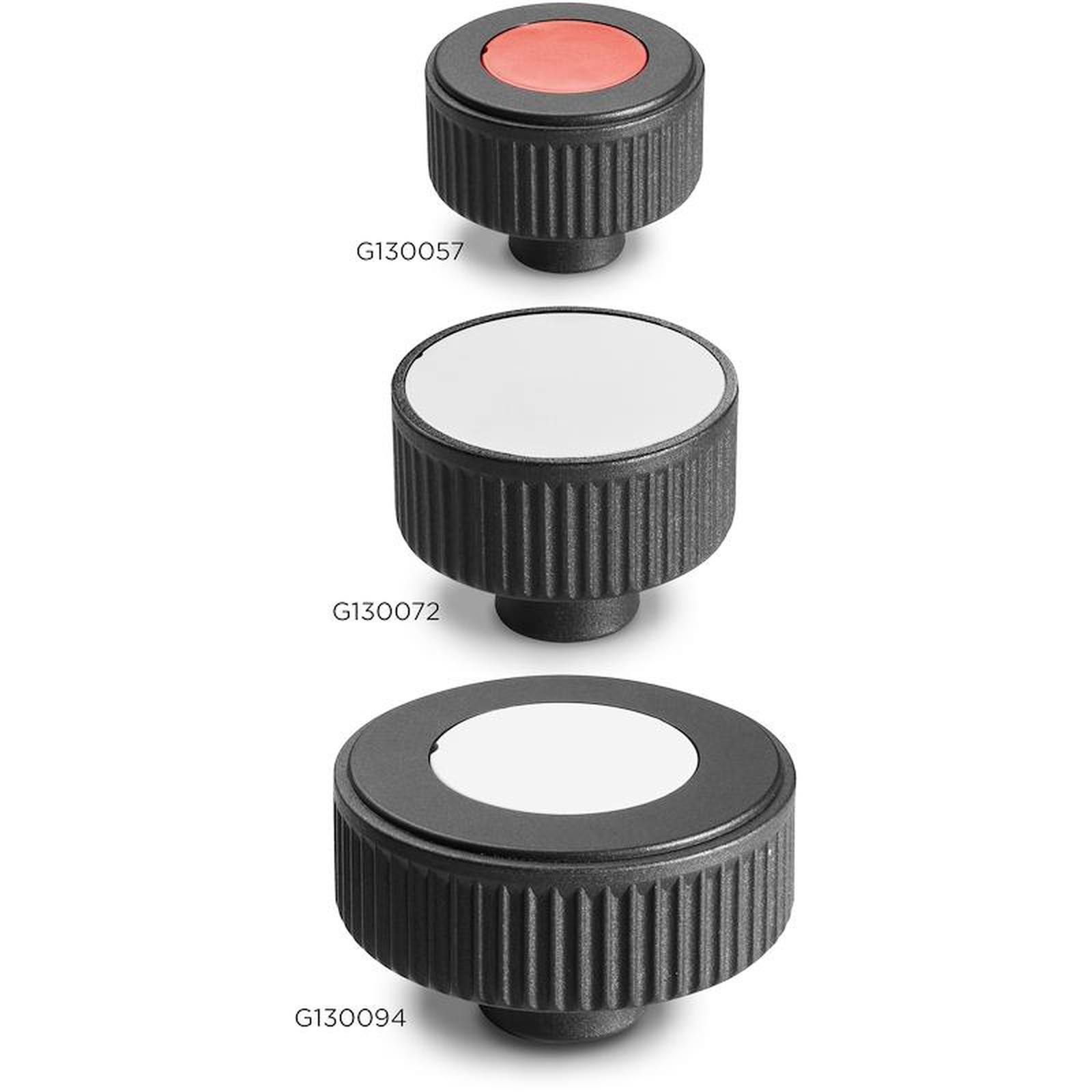 Central cap in grey polyamide (RAL 7035 code 13) with black polyamide support ring for versions 57 and 94. Cap only without ring for version 72. Push-fit assembly. Removable.