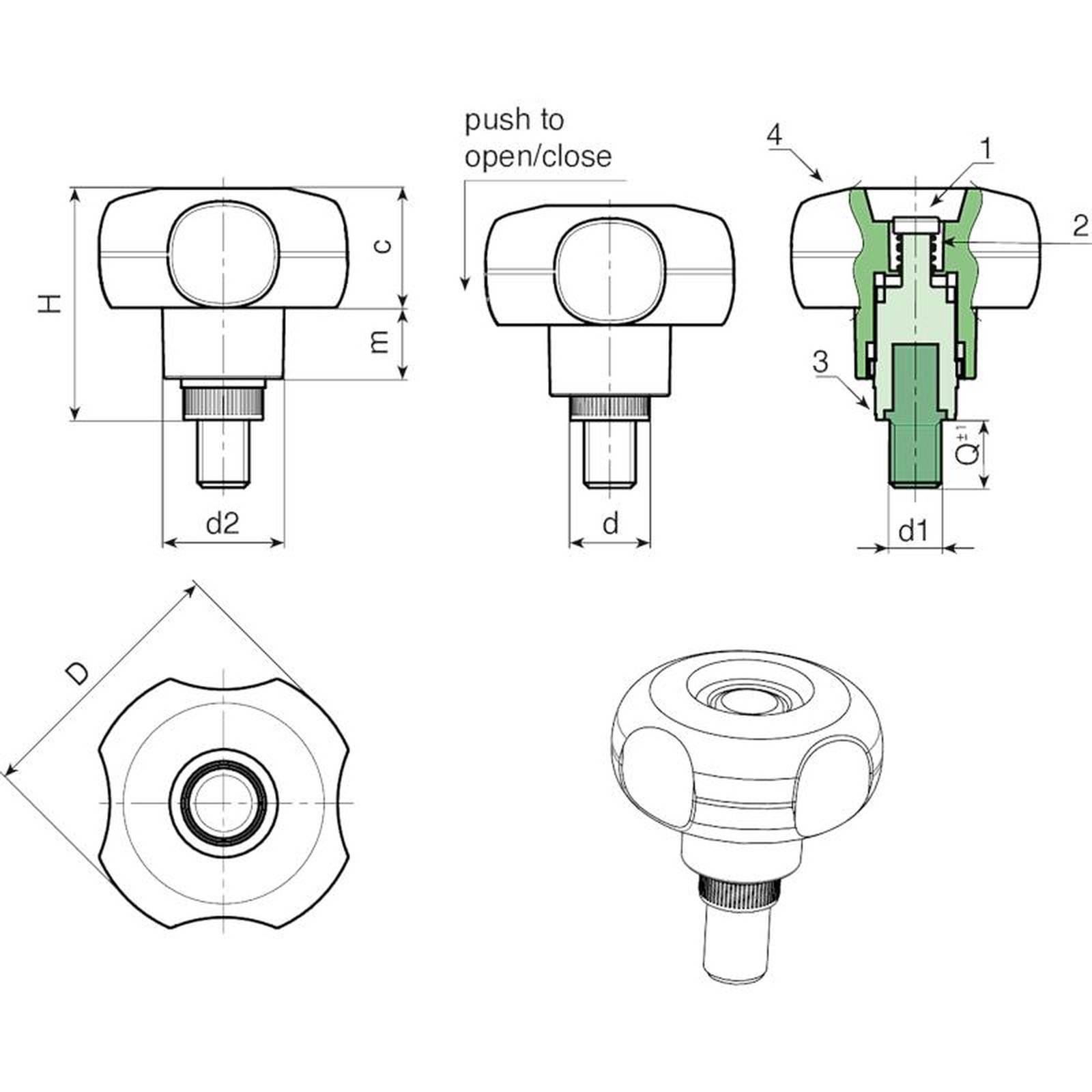 | Code | art. | D | H | d2 | d | m | c | LM | d1 6g | Q | Weight (g) |