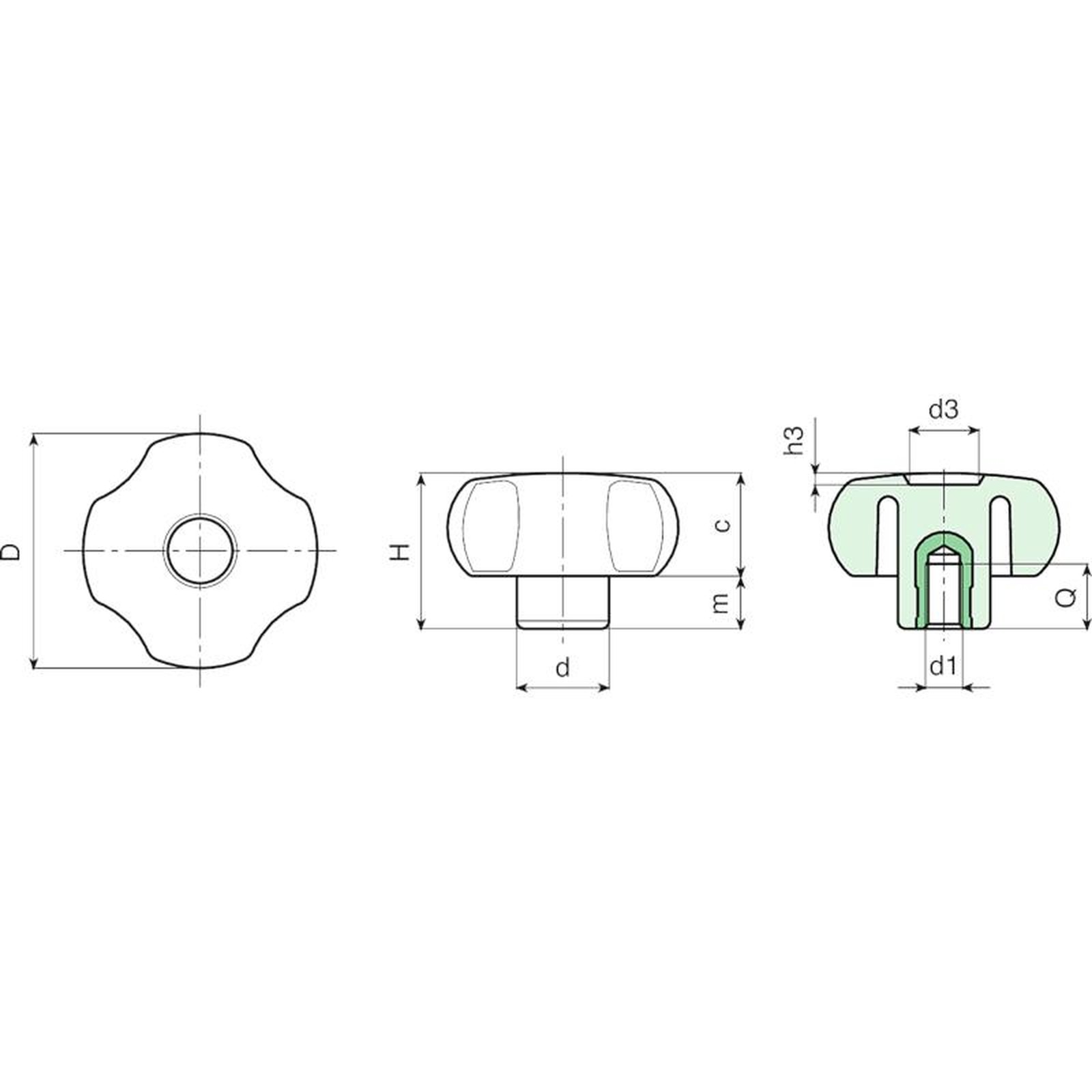 | Code | art. | D | H | d | c | m | d3 | h3 | d1 6H | Q | Weight (g) |