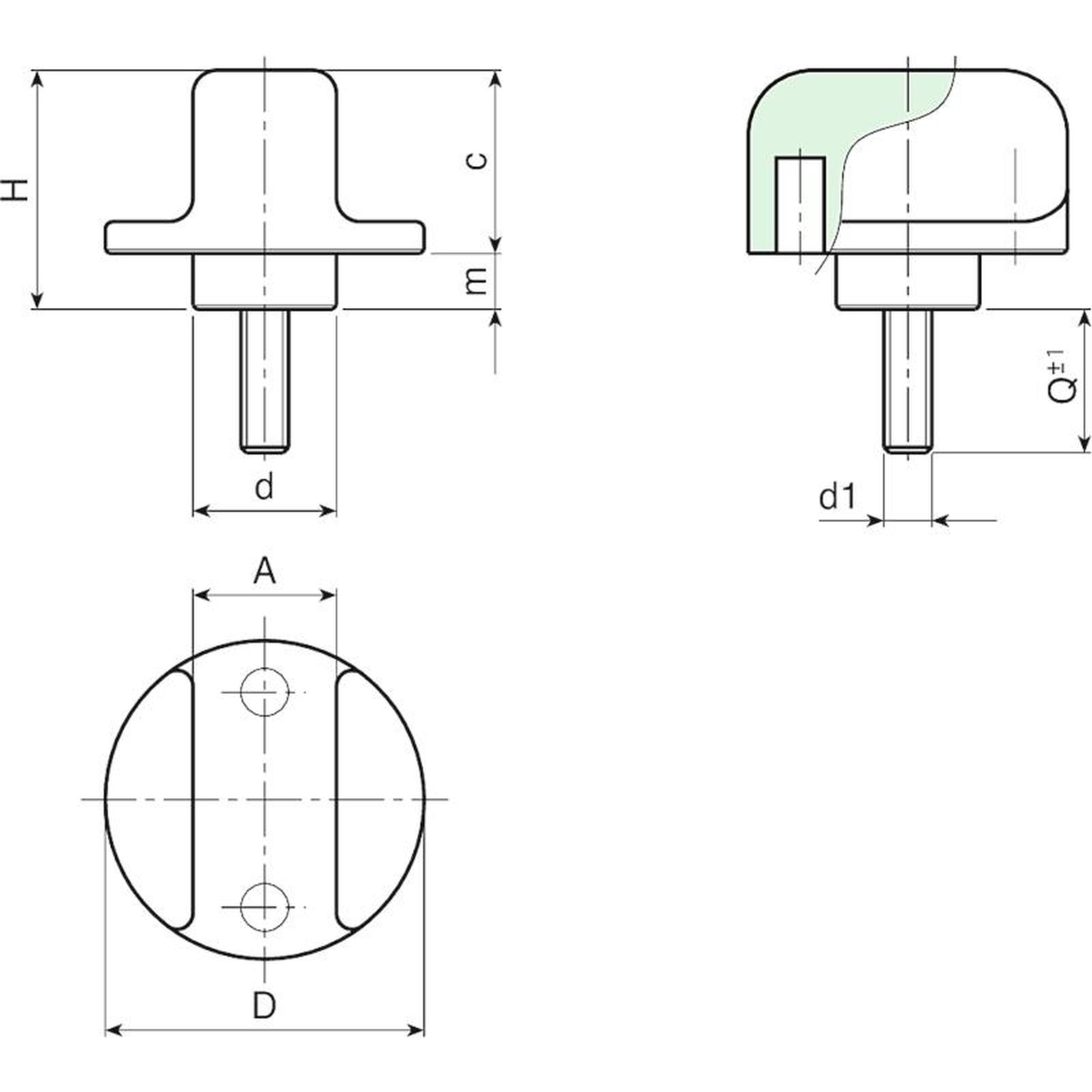 | Code | art. | D | H | d | A | c | m | LM | d1 6g | Q | Weight (g) |