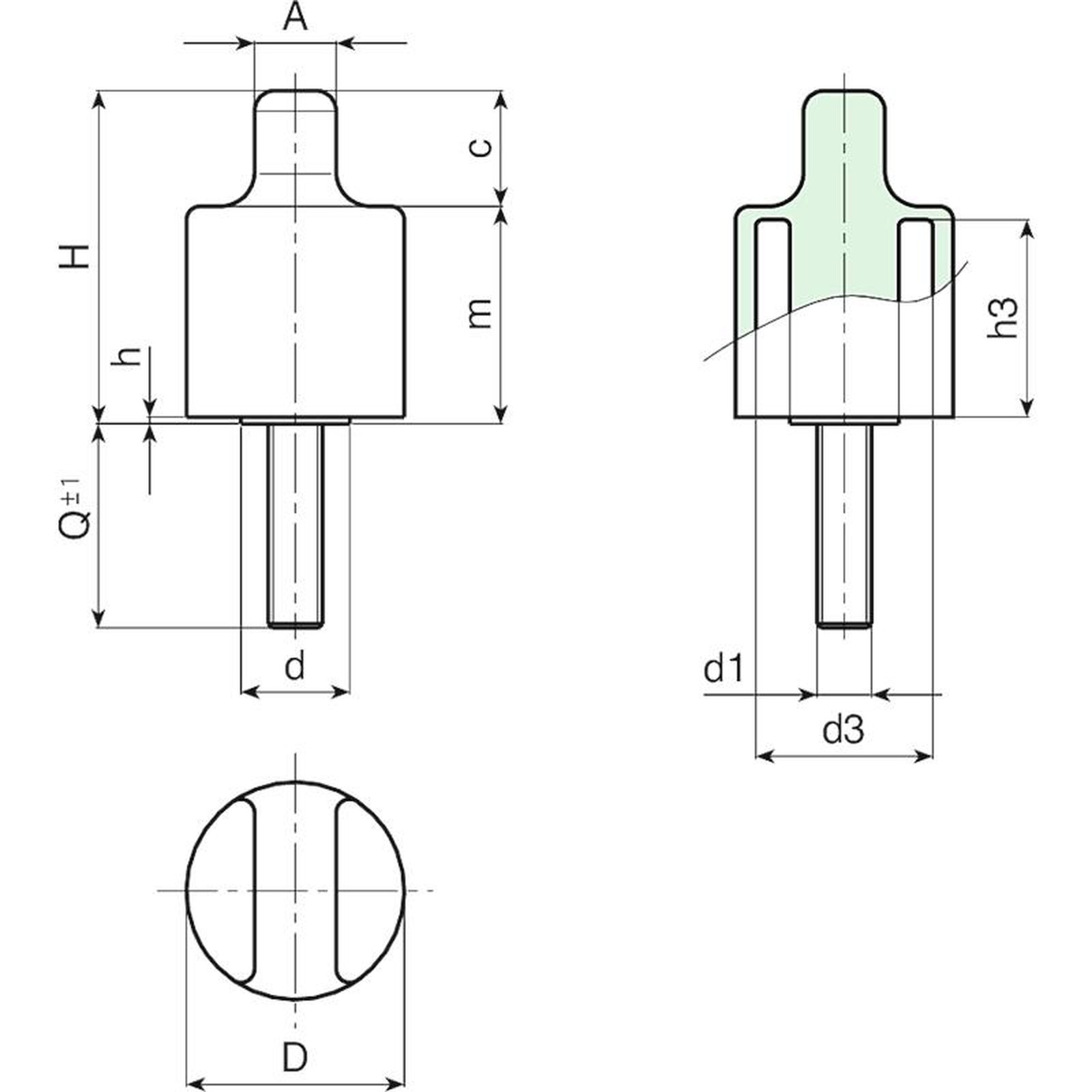 | Code | art. | D | H | d | A | c | m | h | h3 | d3 | LM | d1 6g | Q | Weight (g) |