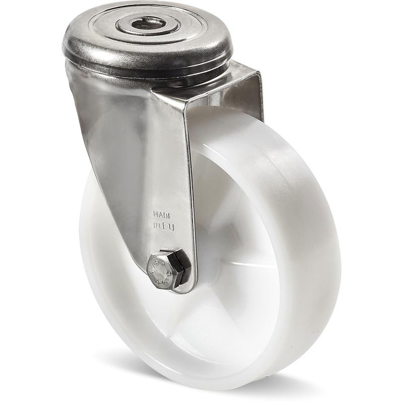 POLYAMIDE MONOLITHIC WHEEL WITH ROUND STAINLESS STEEL SWIVEL SUPPORT AND SMOOTH THROUGH HOLE