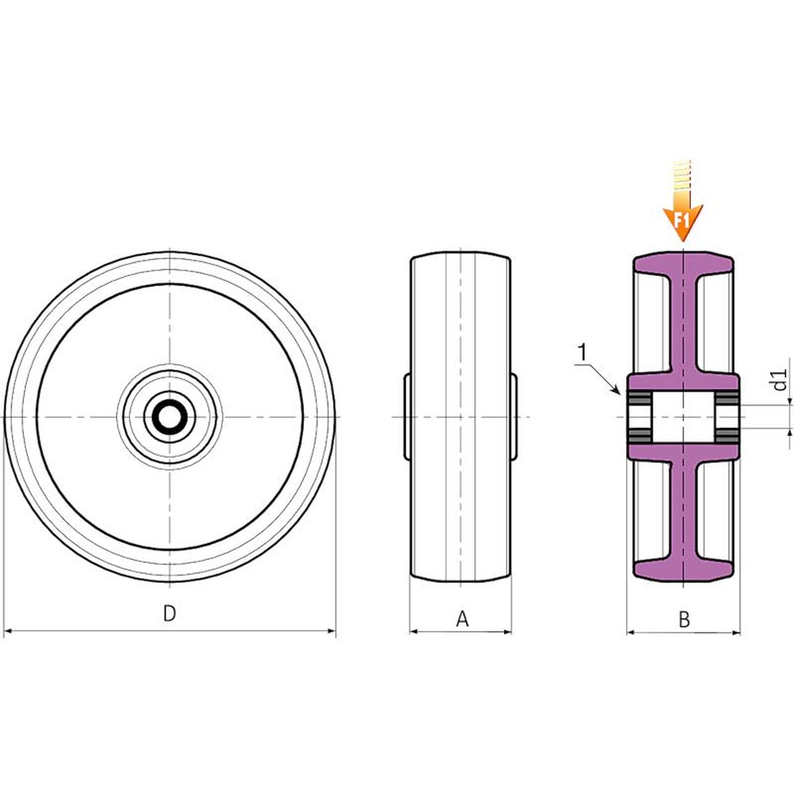 POLYAMIDE MONOLITHIC WHEEL WITH BALL BEARING WITHOUT RIG (HEAVY DUTY)