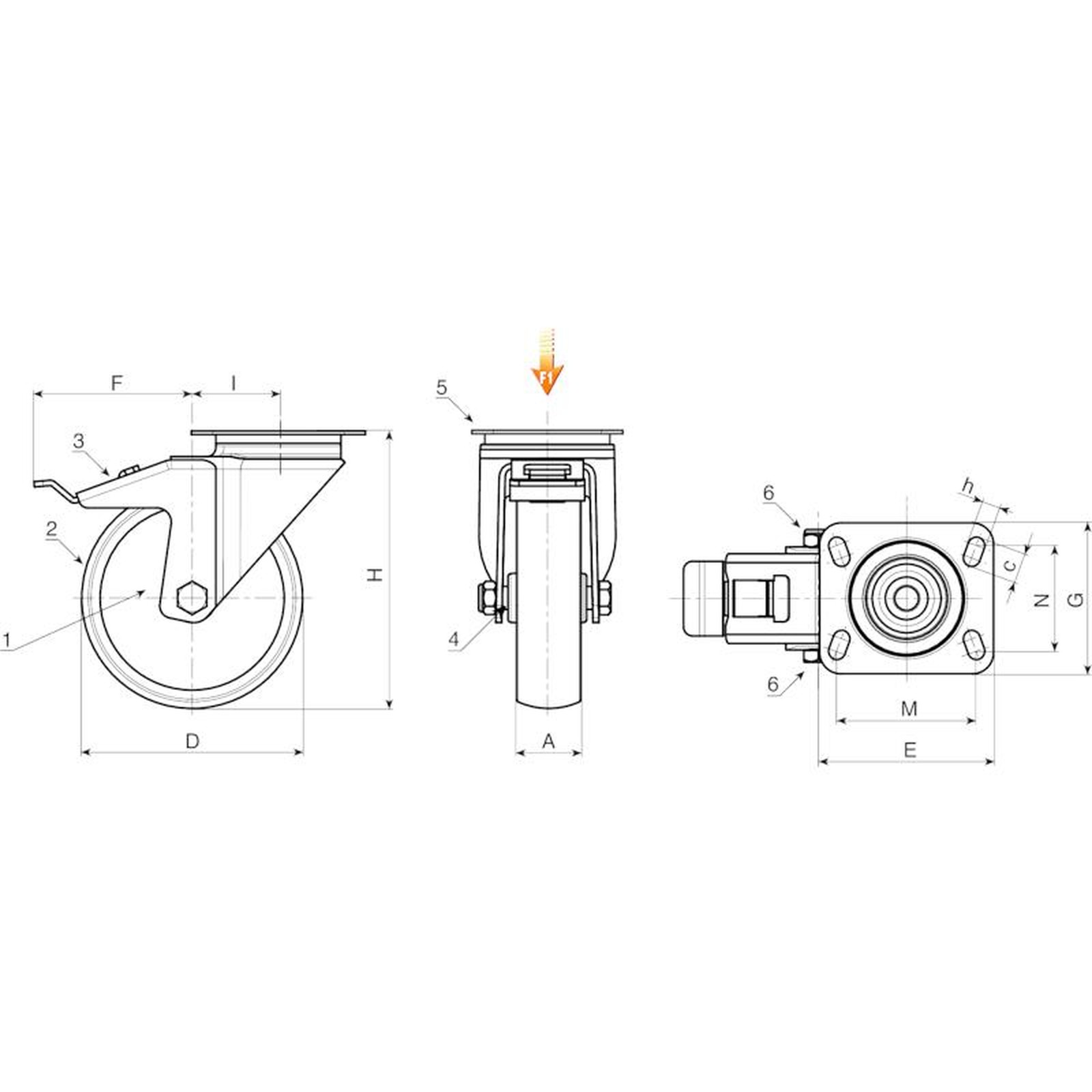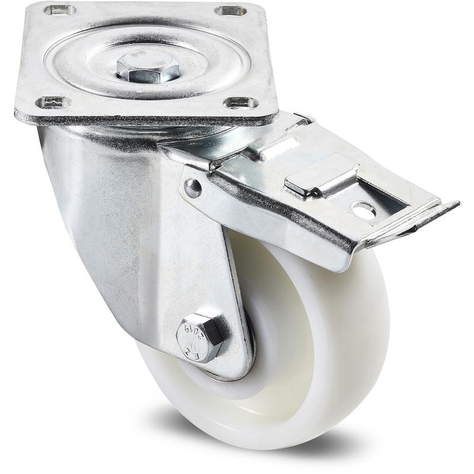 POLYAMIDE MONOLITHIC WHEEL WITH RECTANGULAR SWIVEL STEEL PLATE WITH BEARING - WITH BRAKE (HEAVY DUTY)