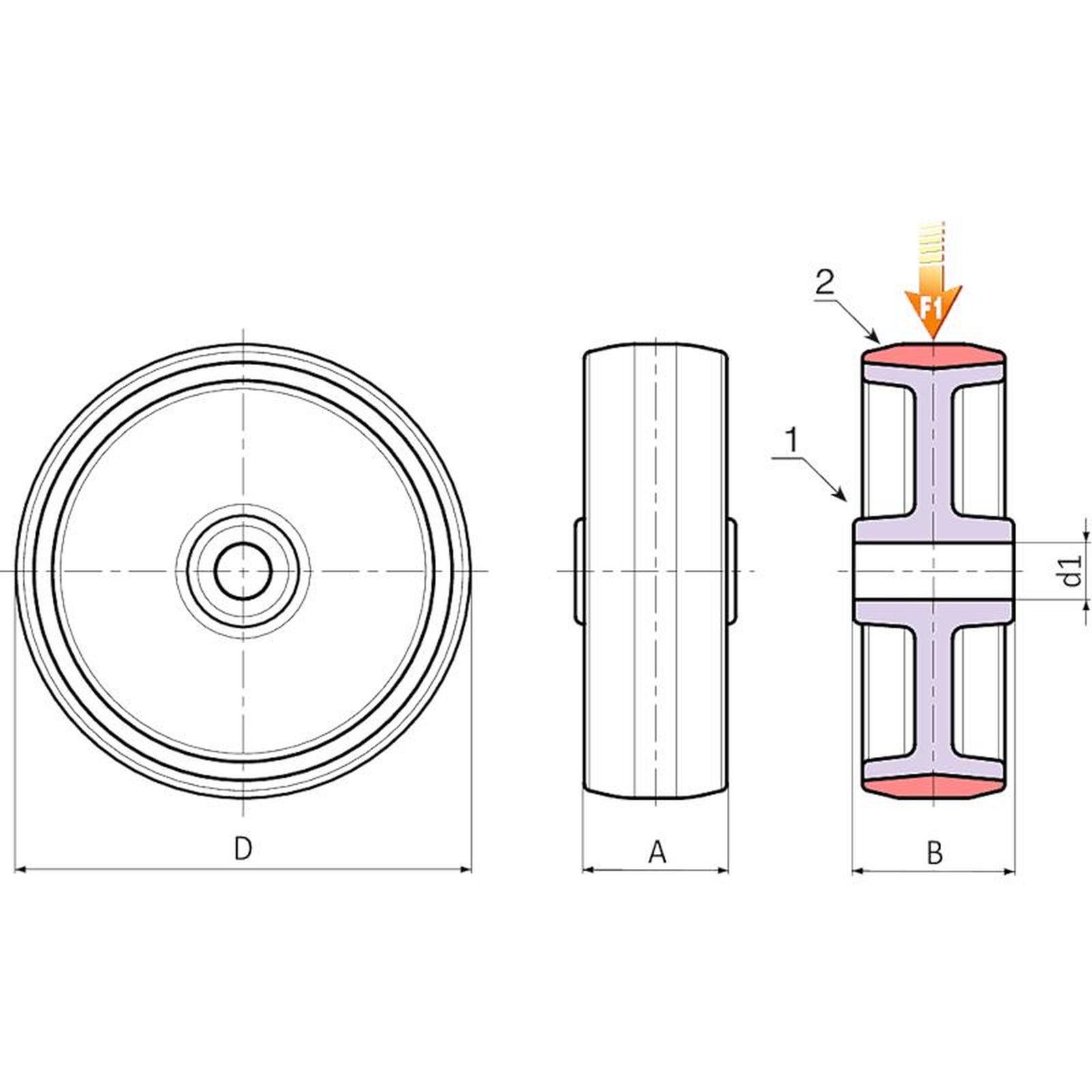 WHEEL WITH POLYAMIDE BODY AND INJECTED POLYURETHANE TREAD (WITHOUT RIG)