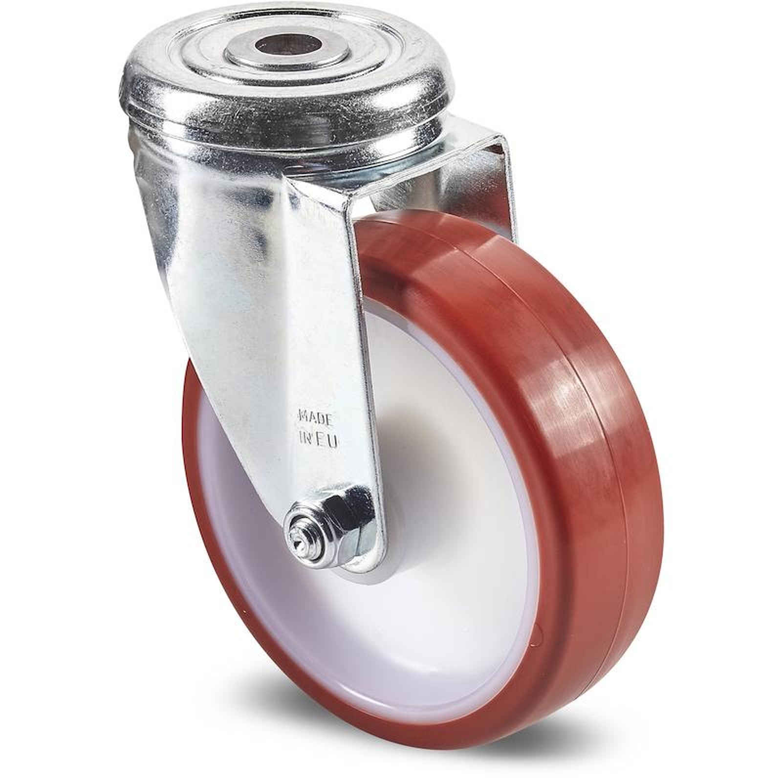 POLYAMIDE / POLYURETHANE WHEEL WITH ROUND STEEL SWIVEL SUPPORT AND SMOOTH THROUGH HOLE