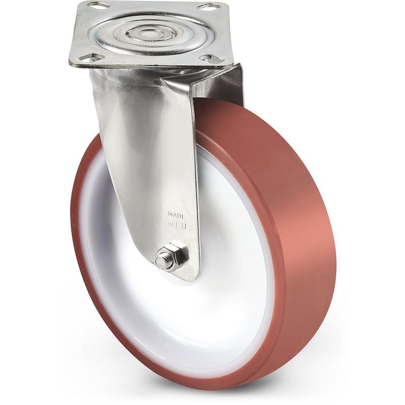 POLYAMIDE / POLYURETHANE WHEEL WITH RECTANGULAR STAINLESS STEEL SWIVEL PLATE