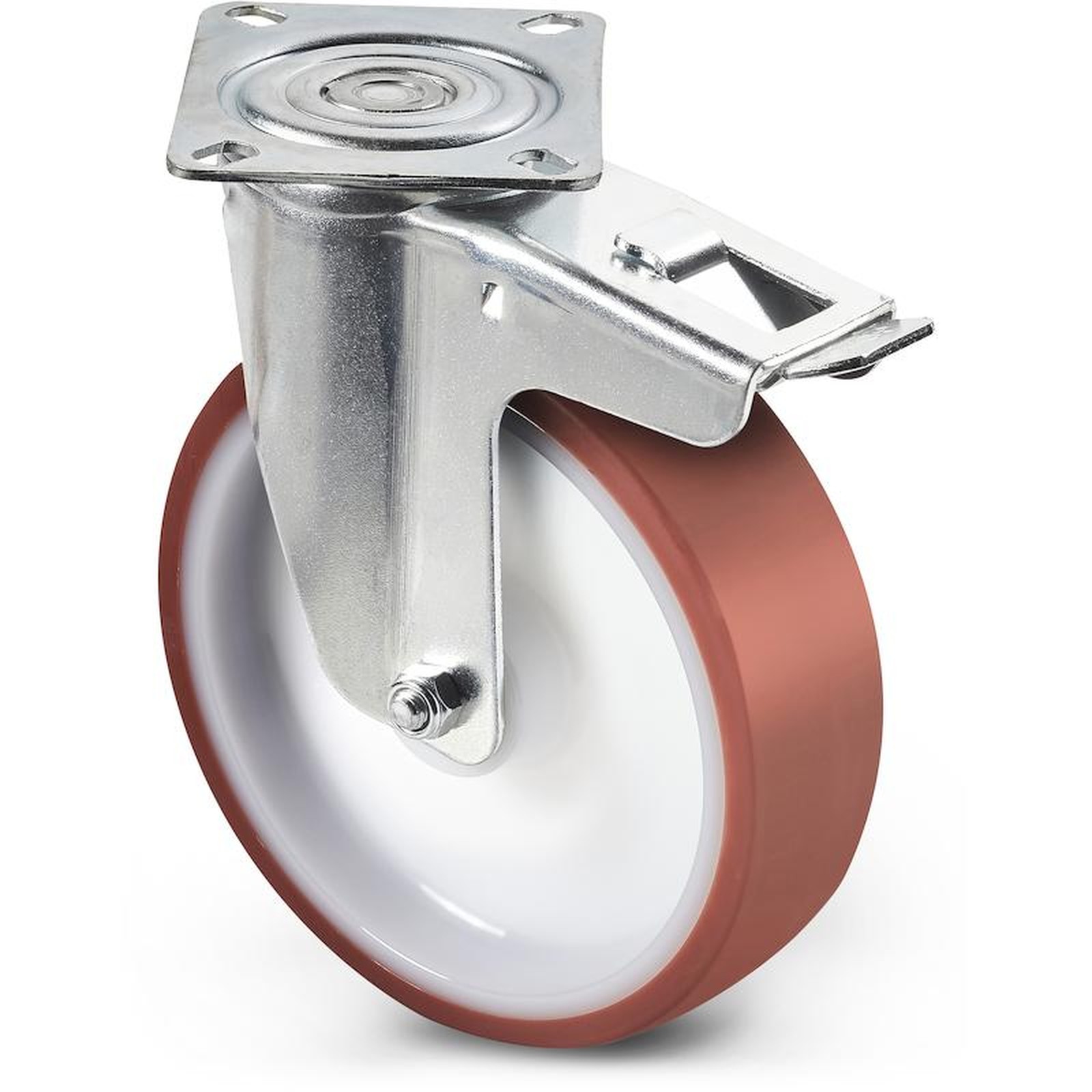 POLYAMIDE / POLYURETHANE WHEEL WITH RECTANGULAR SWIVEL STEEL PLATE - WITH BRAKE