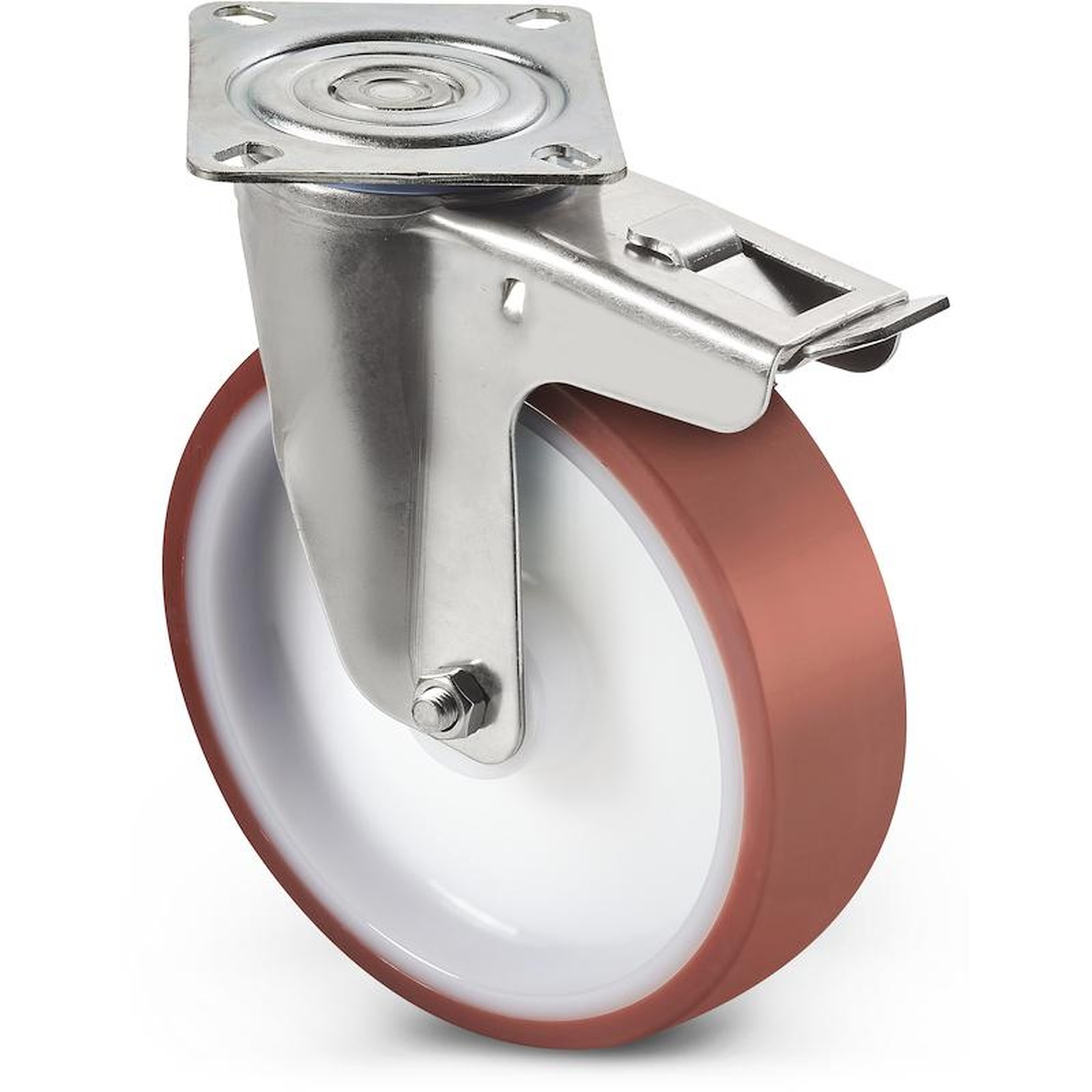 POLYAMIDE / POLYURETHANE WHEEL WITH RECTANGULAR STAINLESS STEEL SWIVEL PLATE - WITH BRAKE