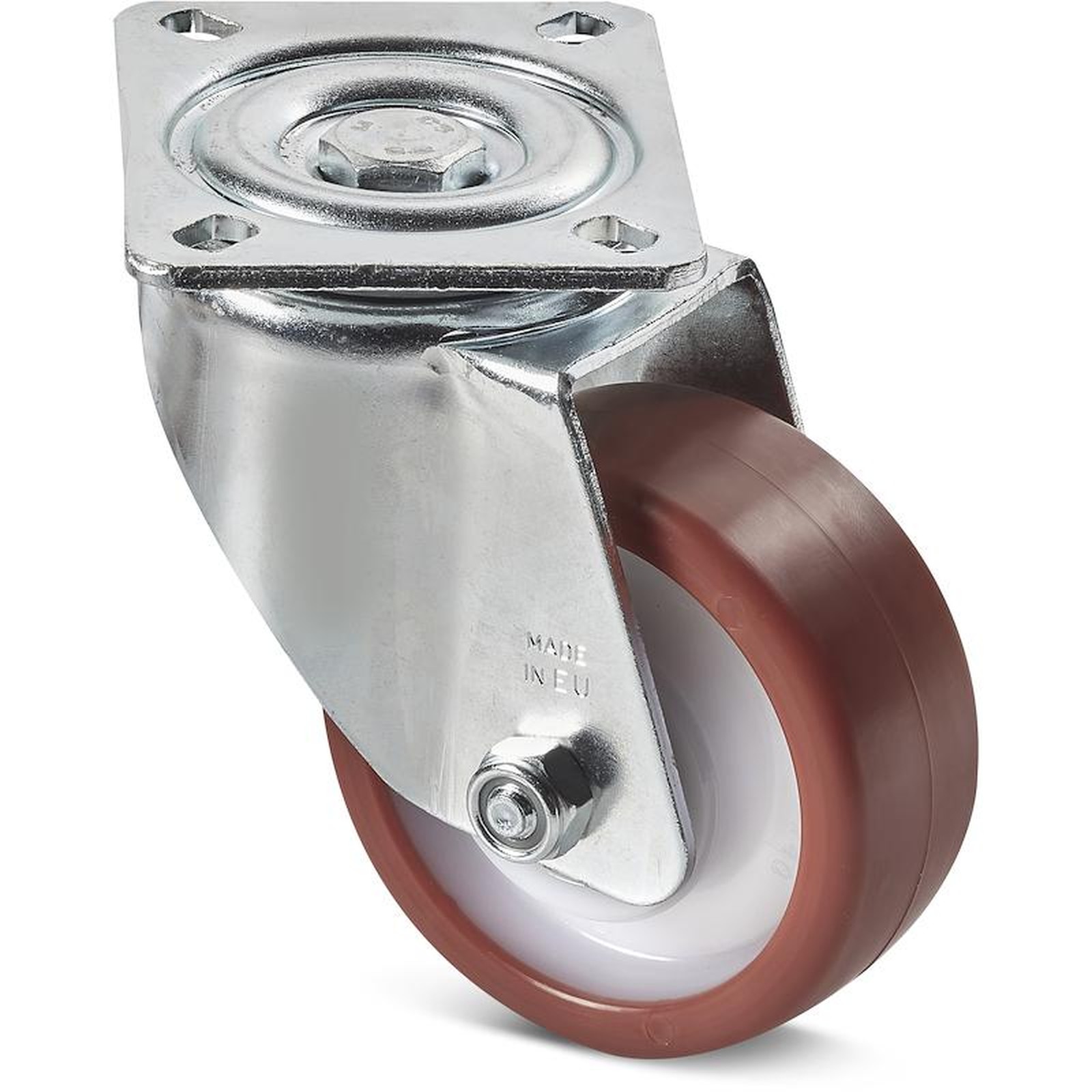 POLYAMIDE / POLYURETHANE WHEEL WITH RECTANGULAR SWIVEL PLATE AND STEEL BEARINGS (HEAVY DUTY SERIES)