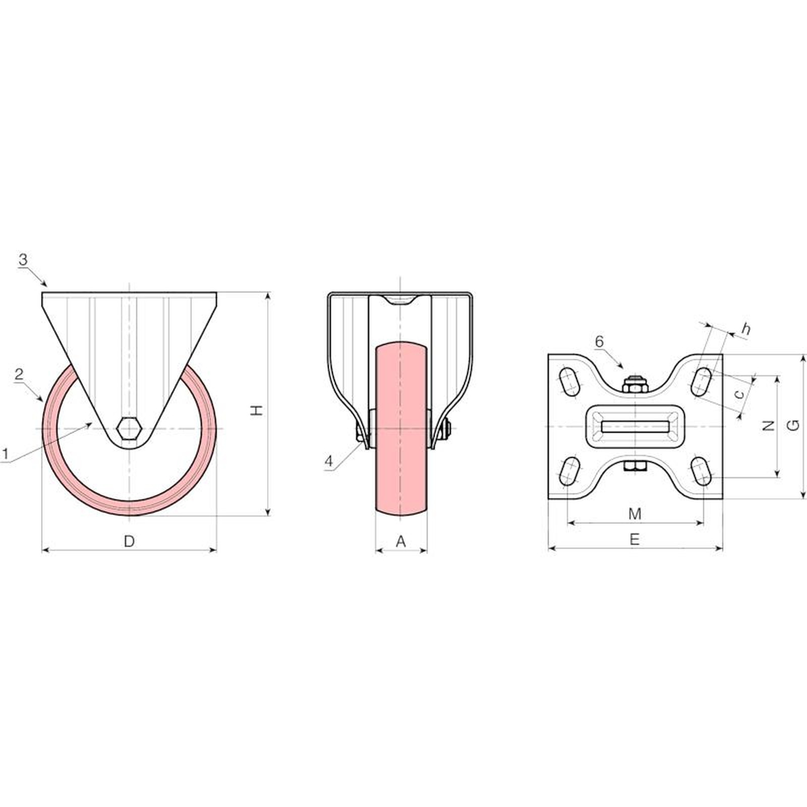 POLYAMIDE / POLYURETHANE WHEEL WITH RIGID STEEL FORK AND STEEL BEARINGS (HEAVY DUTY SERIES)