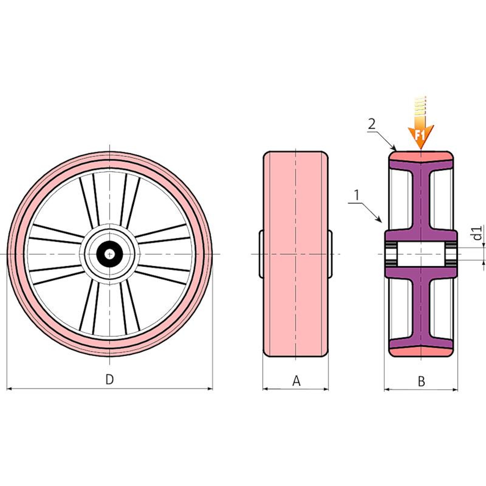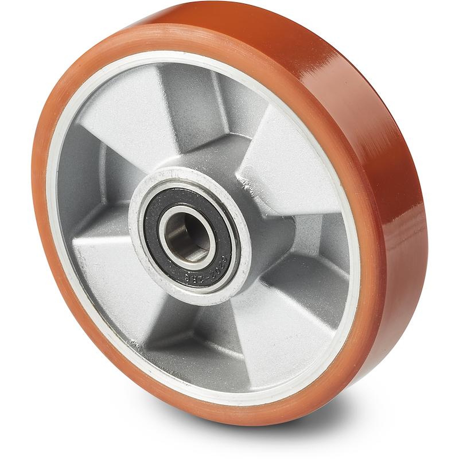 WHEEL WITH ALUMINIUM BODY AND MOULD-ON POLYURETHANE TREAD WITH BALL BEARINGS WITHOUT RIG