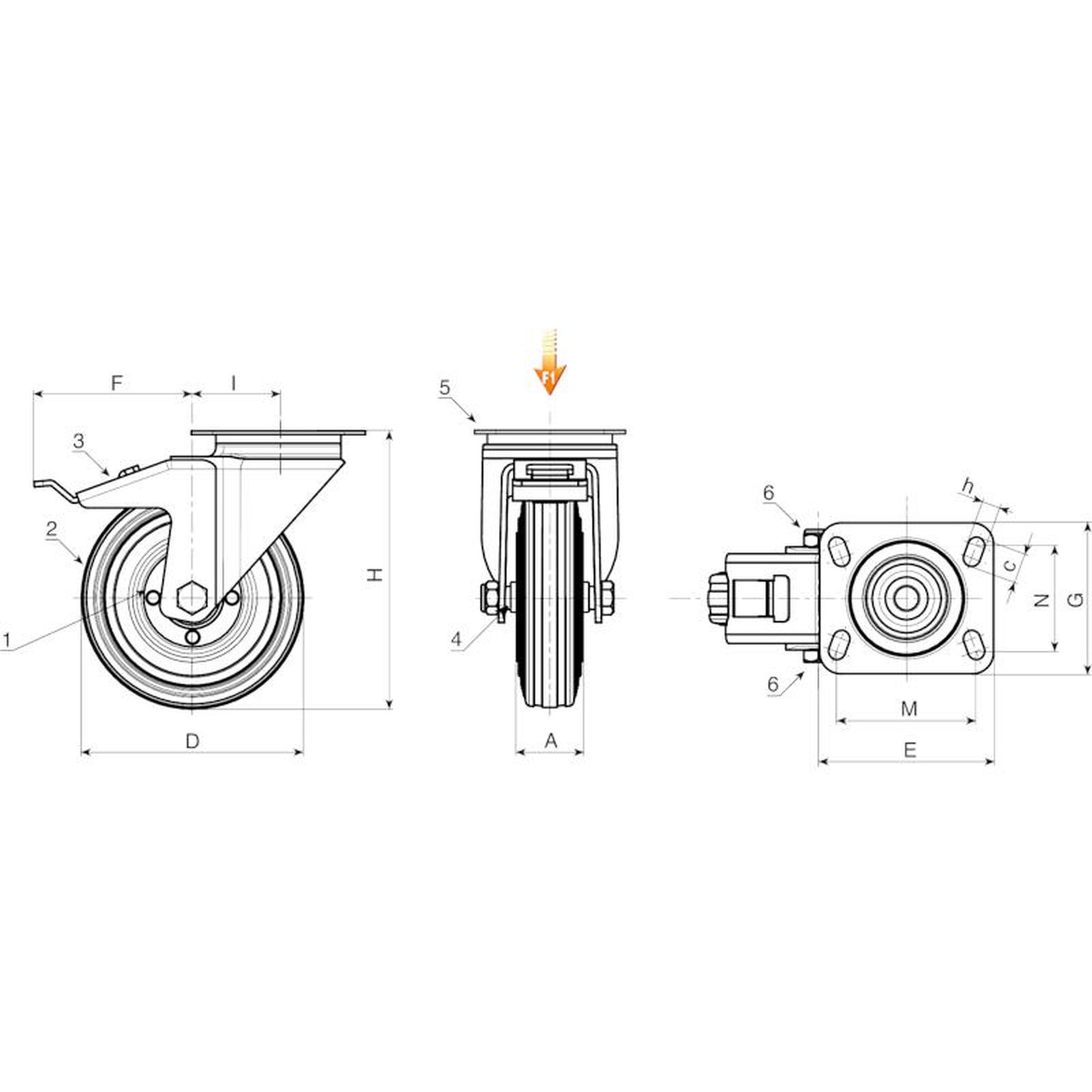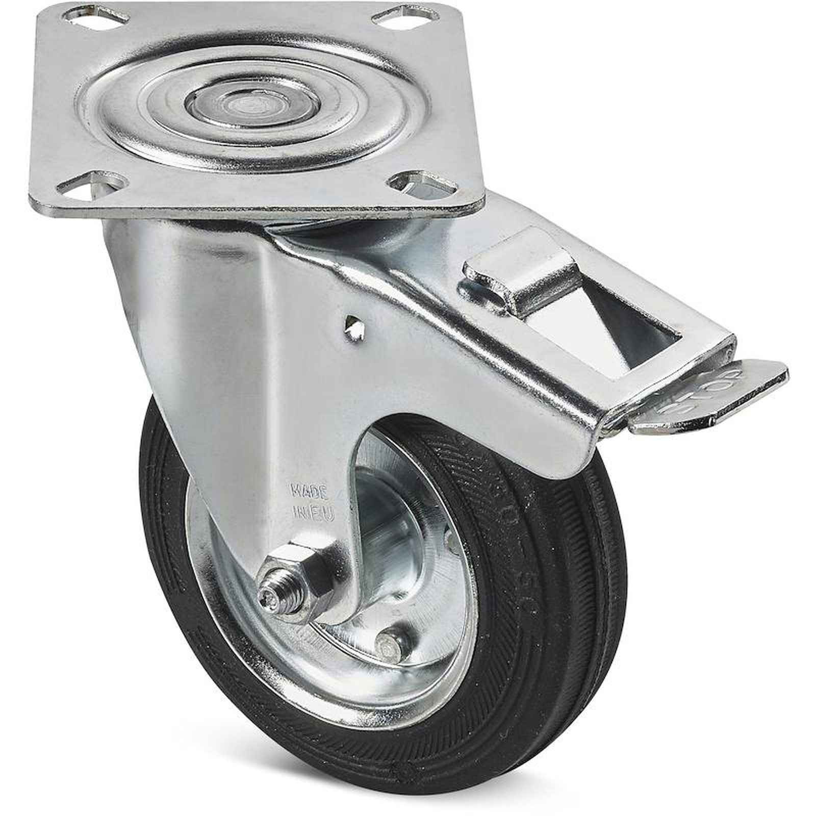SHEET METAL RIM / RUBBER WHEEL WITH RECTANGULAR SWIVEL STEEL PLATE WITH BRAKE