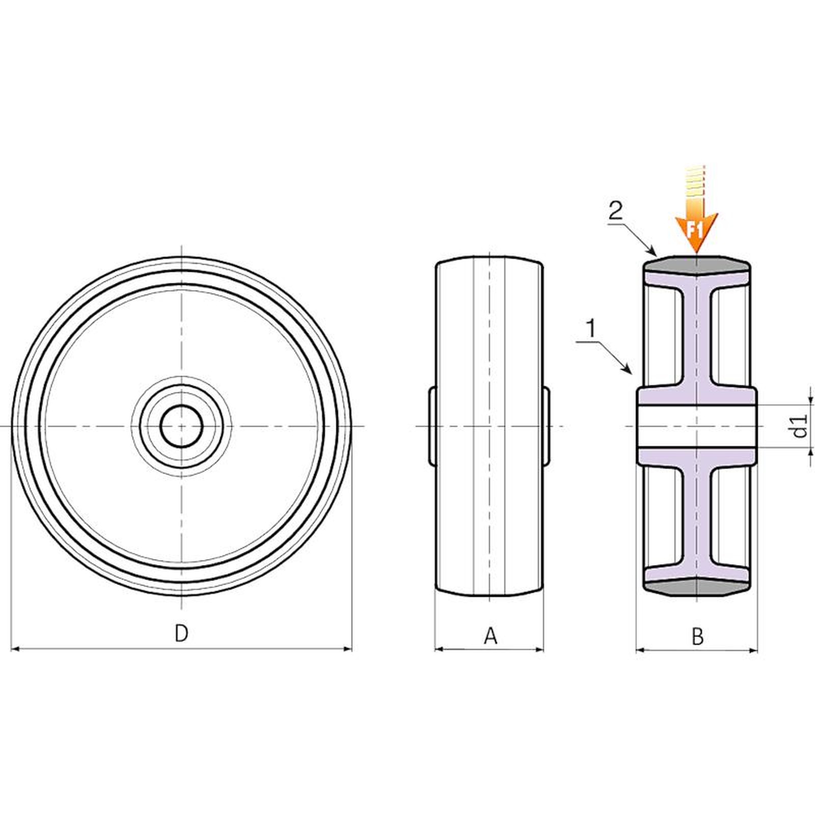 | Code | art. | D | A | B | d1 | Weight (g) | F1 (Kg) |