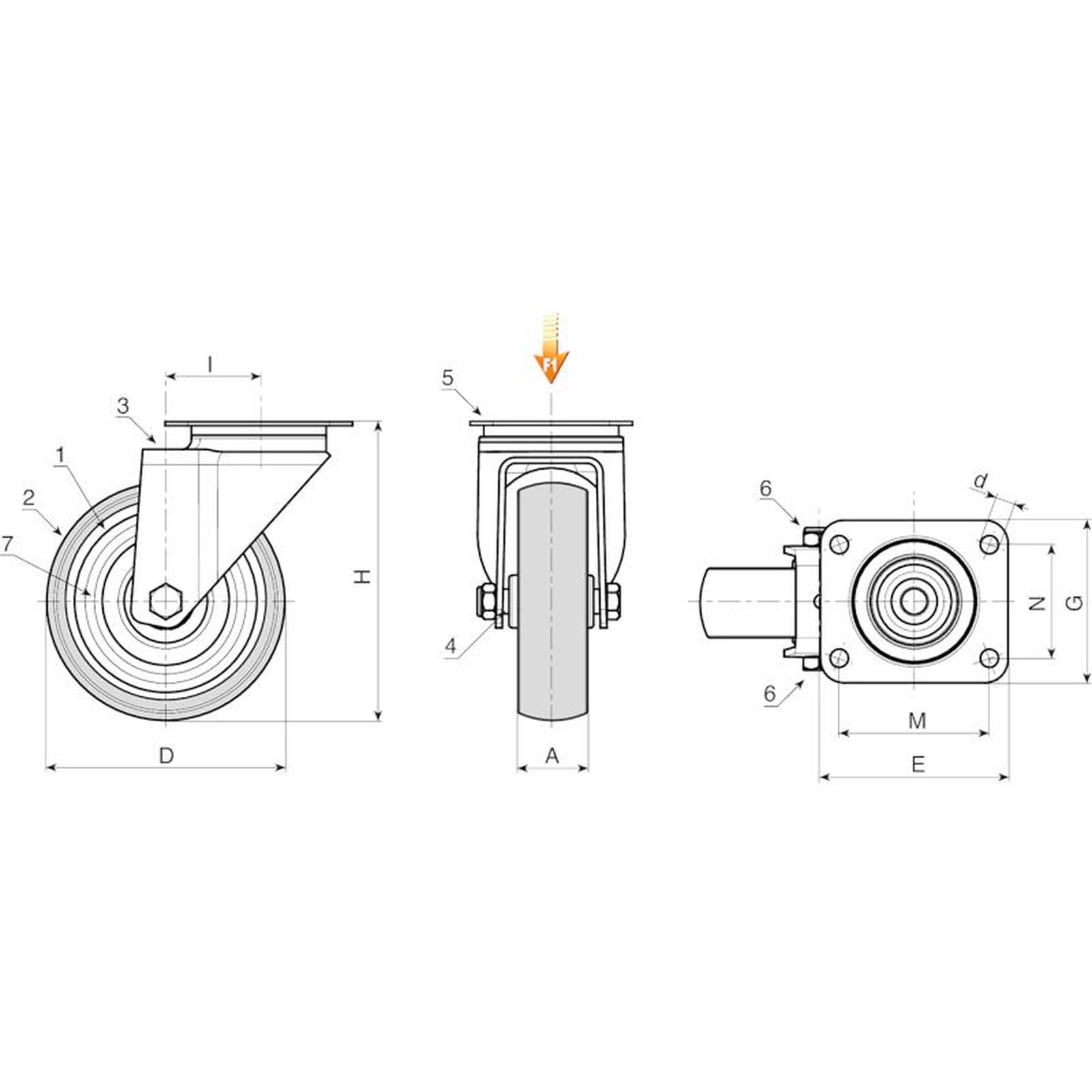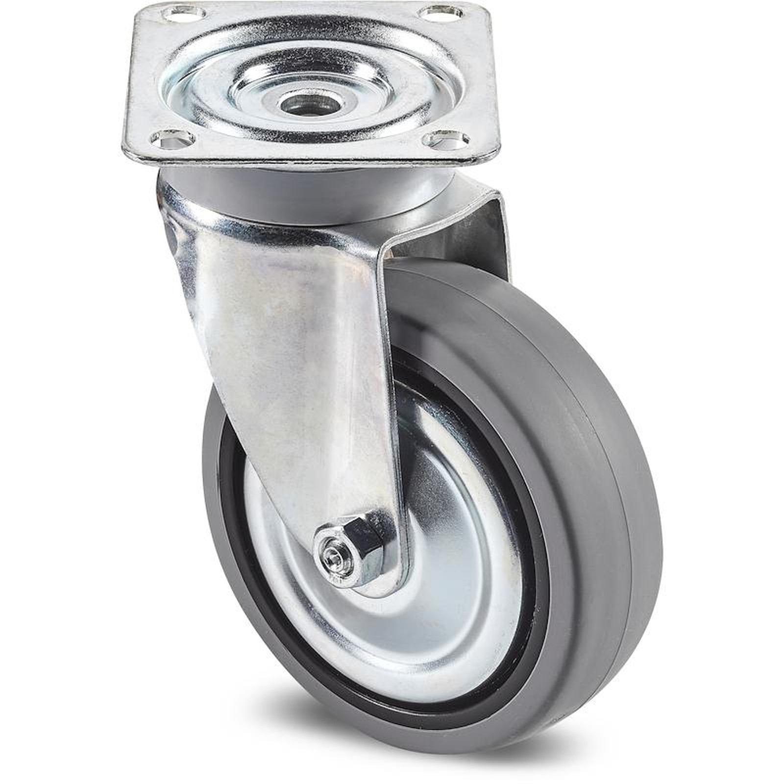 POLYPROPYLENE / RUBBER WHEEL WITH RECTANGULAR SWIVEL STEEL PLATE