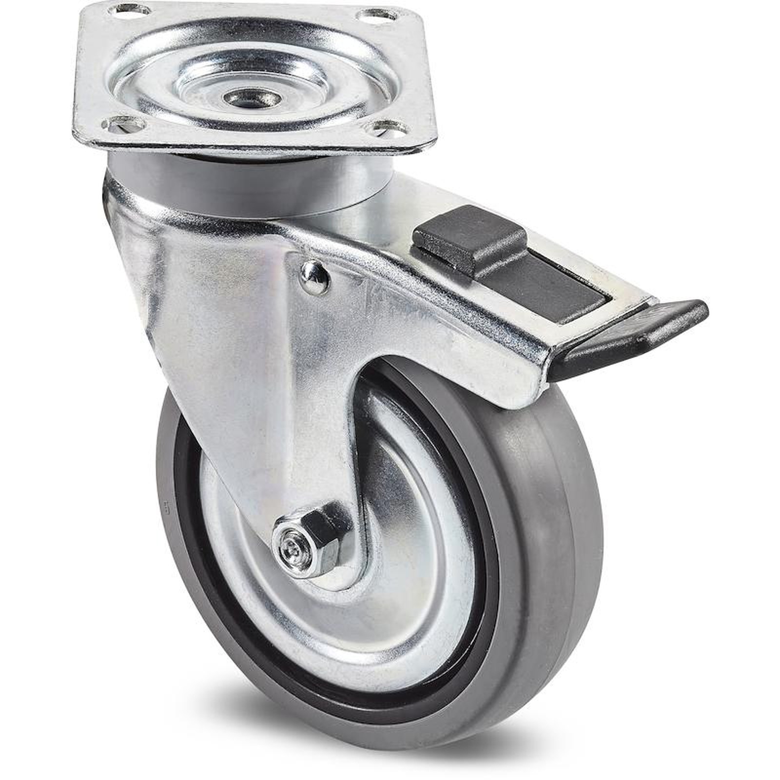 POLYPROPYLENE / RUBBER WHEEL WITH RECTANGULAR SWIVEL STEEL PLATE WITH BRAKE