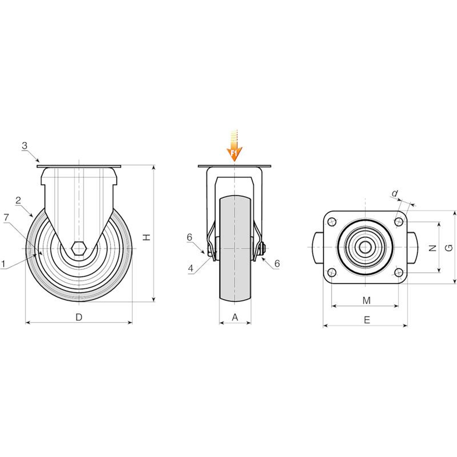 | Code | art. | D | A | H | E | G | M | N | d | Weight (g) | F1 (Kg) |