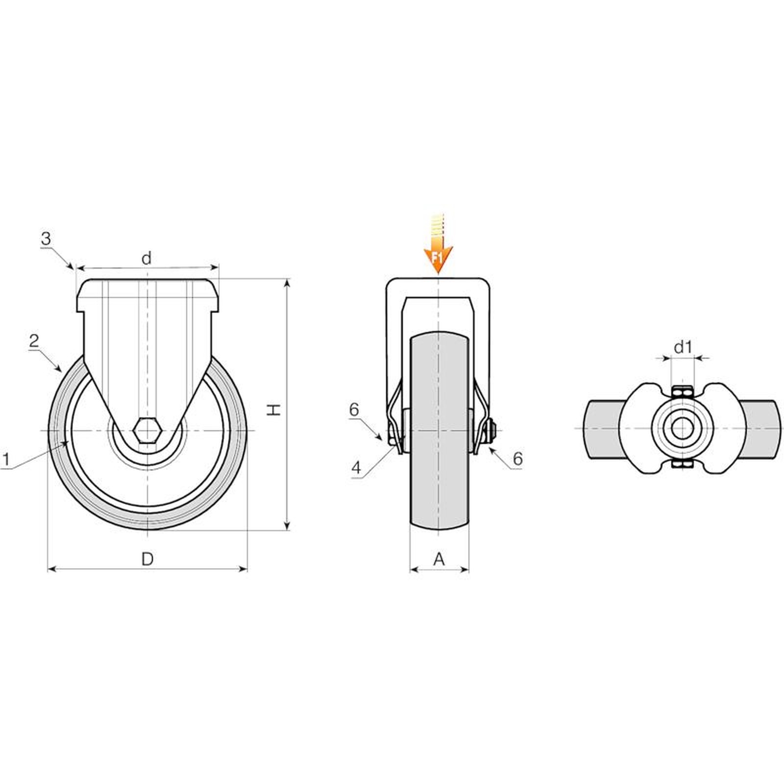 | Code | art. | D | A | H | d | d1 H7 | Weight (g) | F1 (Kg) |
