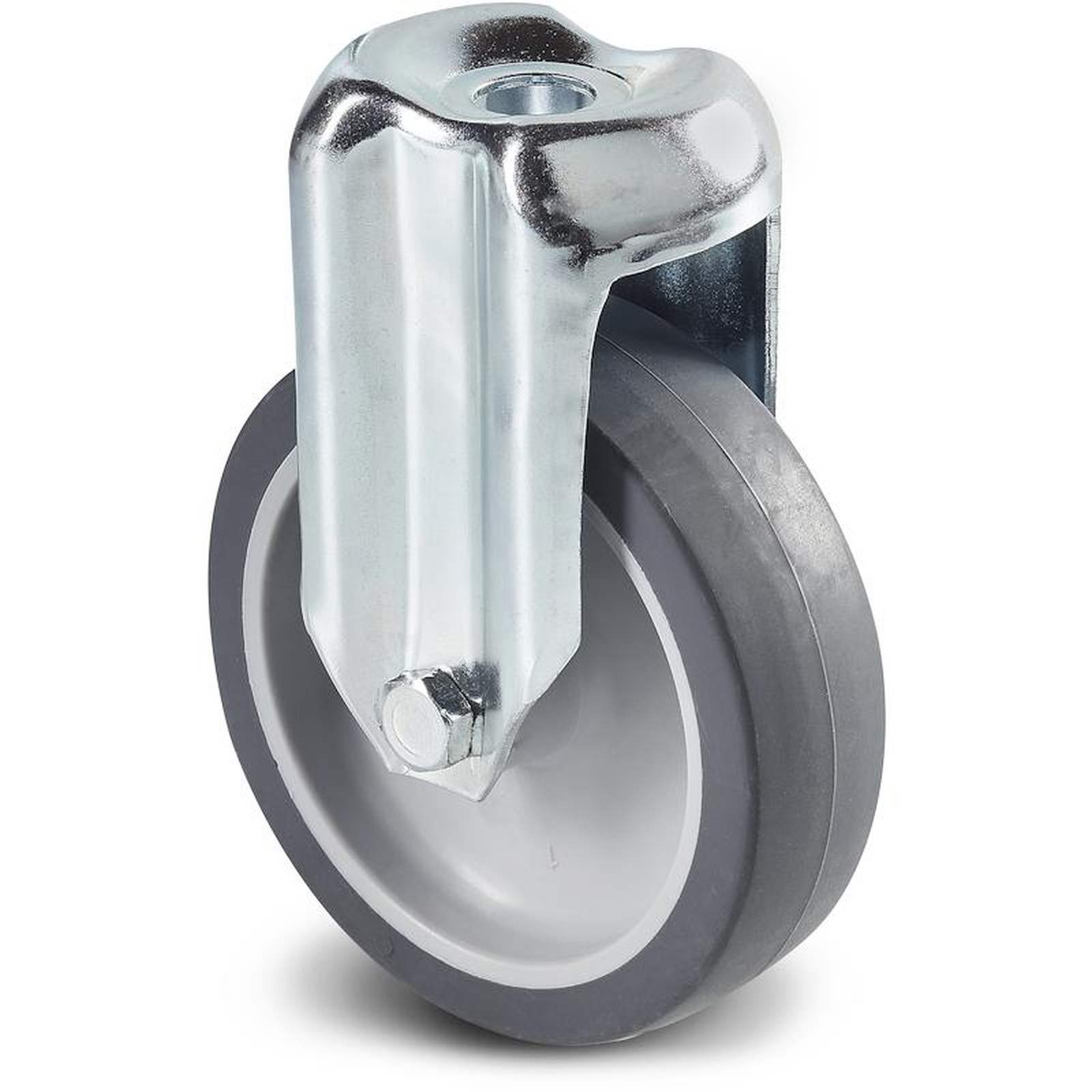 POLYPROPYLENE / RUBBER WHEEL WITH RIGID STEEL FORK AND SMOOTH THROUGH BORE