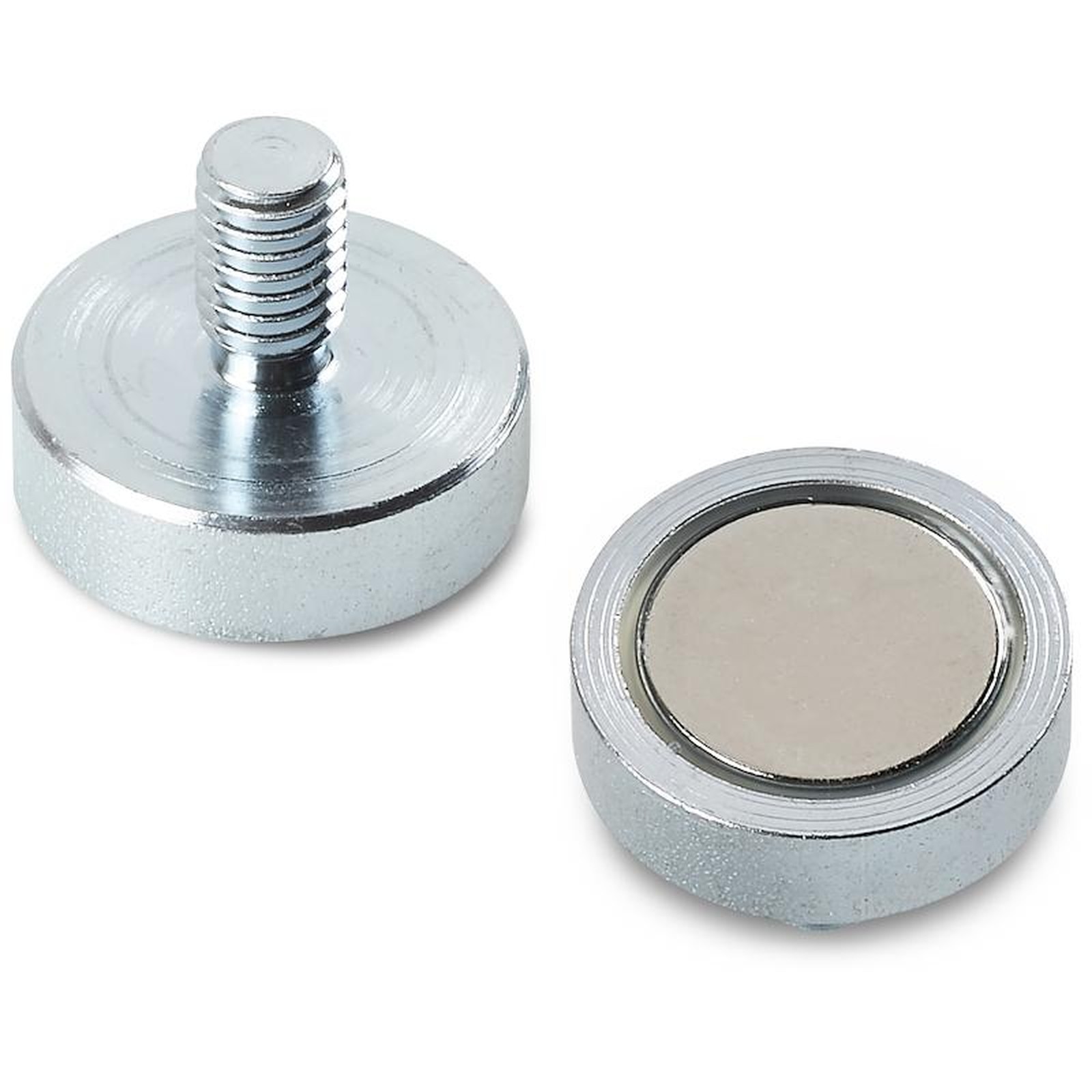 NEODYMIUM ROUND DISC MAGNET WITH GALVANISED STEEL SHELL AND THREADED STUD