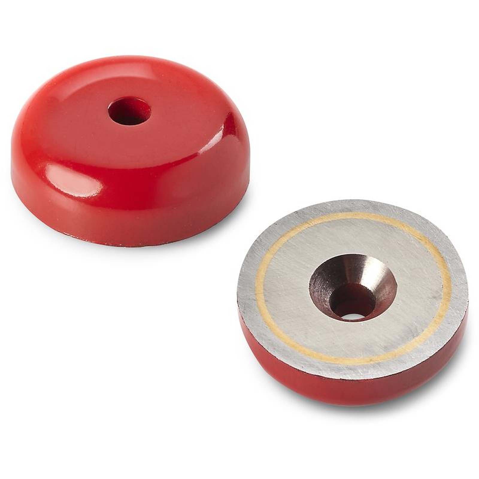 AlNiCo FLAT ROUND DISC MAGNET WITH PAINTED STEEL SHELL AND SMOOTH THROUGH BORE
