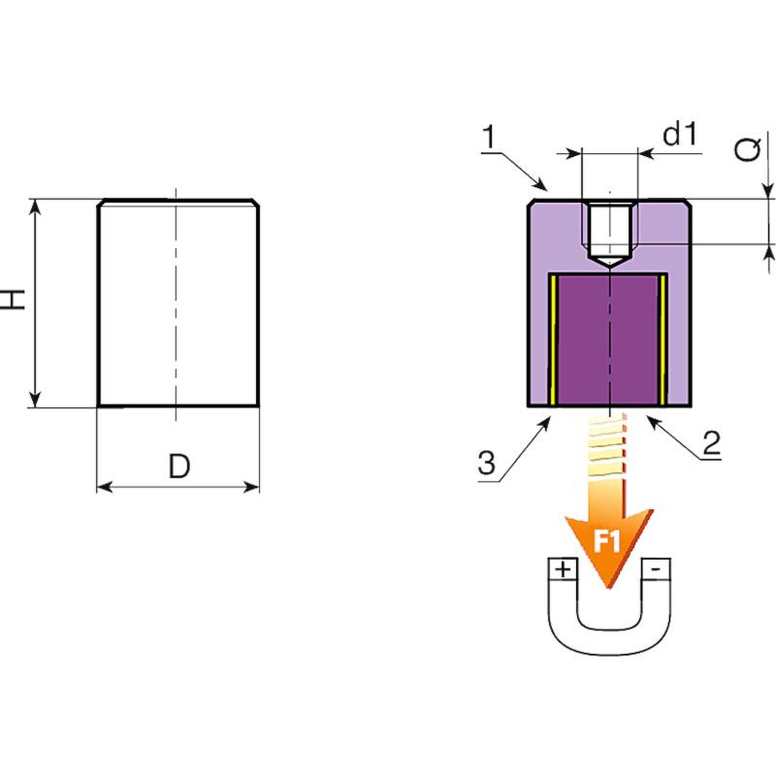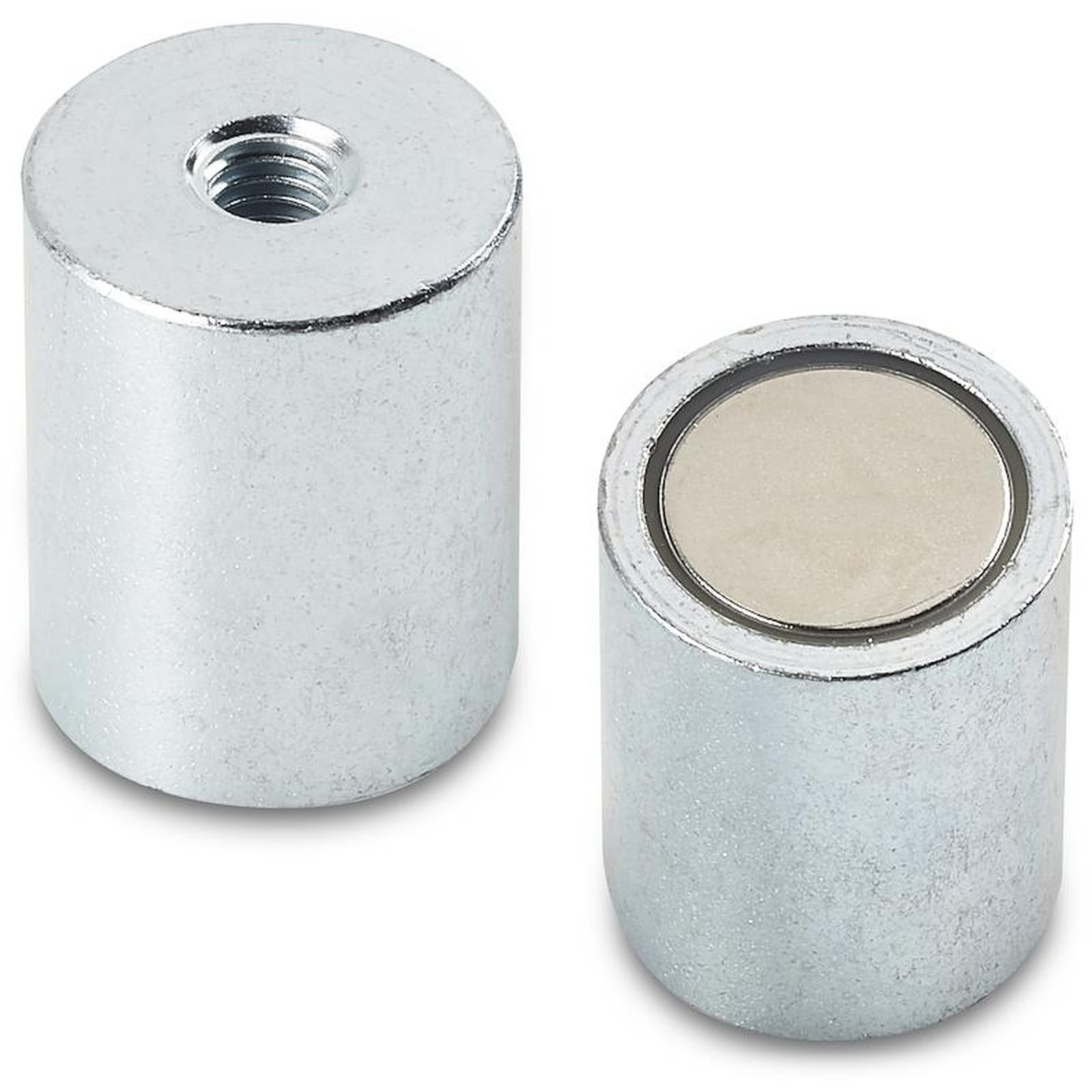 NEODYMIUM CYLINDRICAL MAGNET WITH GALVANISED STEEL SHELL WITH FEMALE THREADED HOLE
