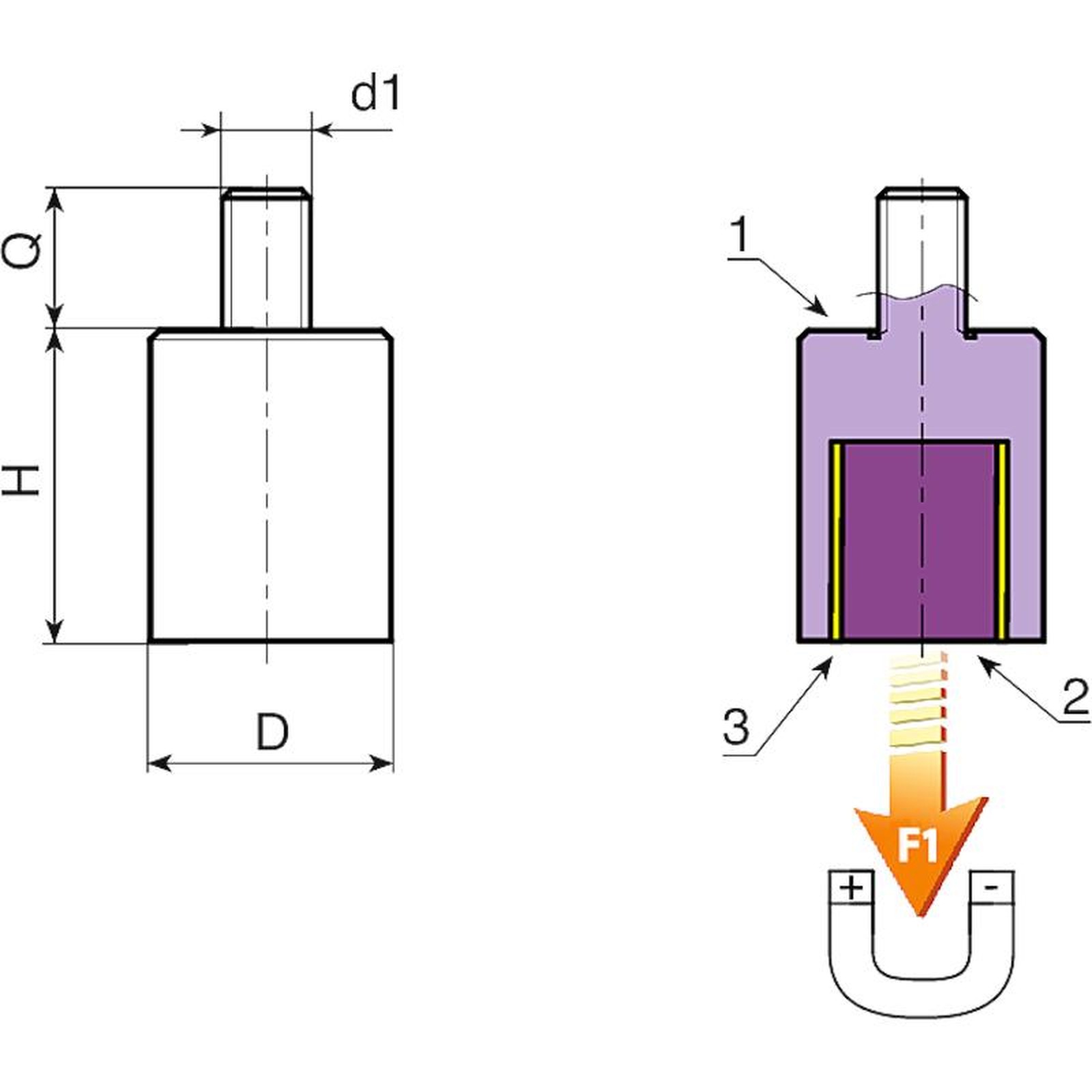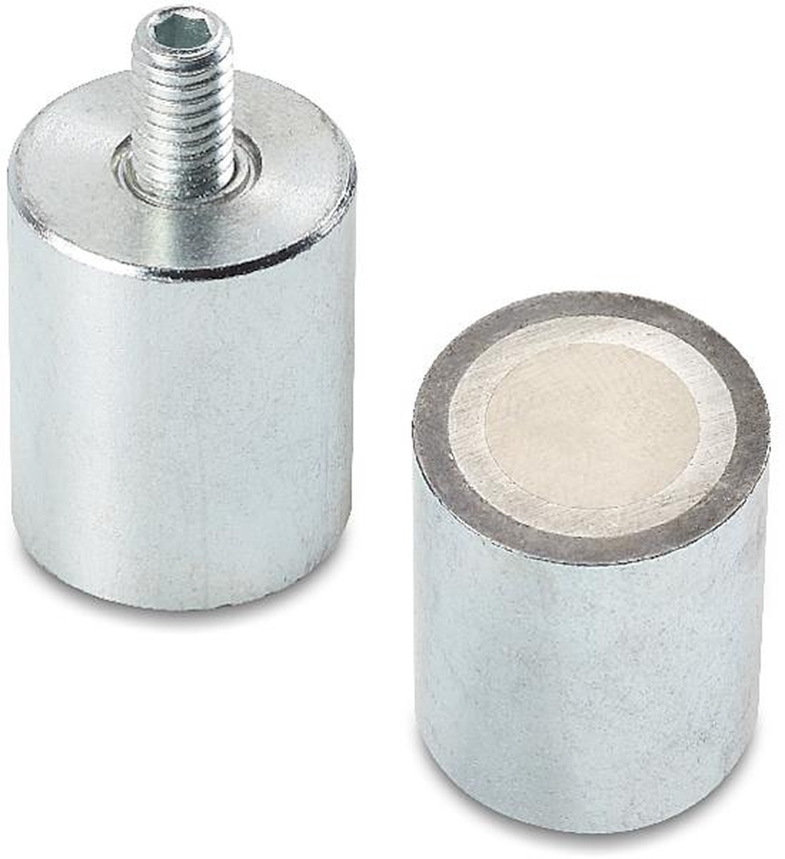 ALUMINIUM-NICKEL-COBALT CYLINDRICAL MAGNET WITH GALVANISED STEEL SHELL WITH THREADED STUD