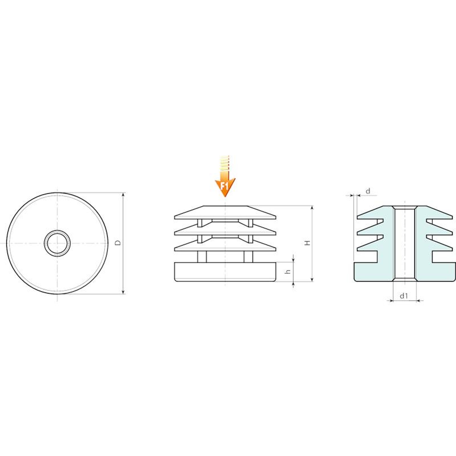 Round plug with round lamellar insert in Polyethylene (HDPE).