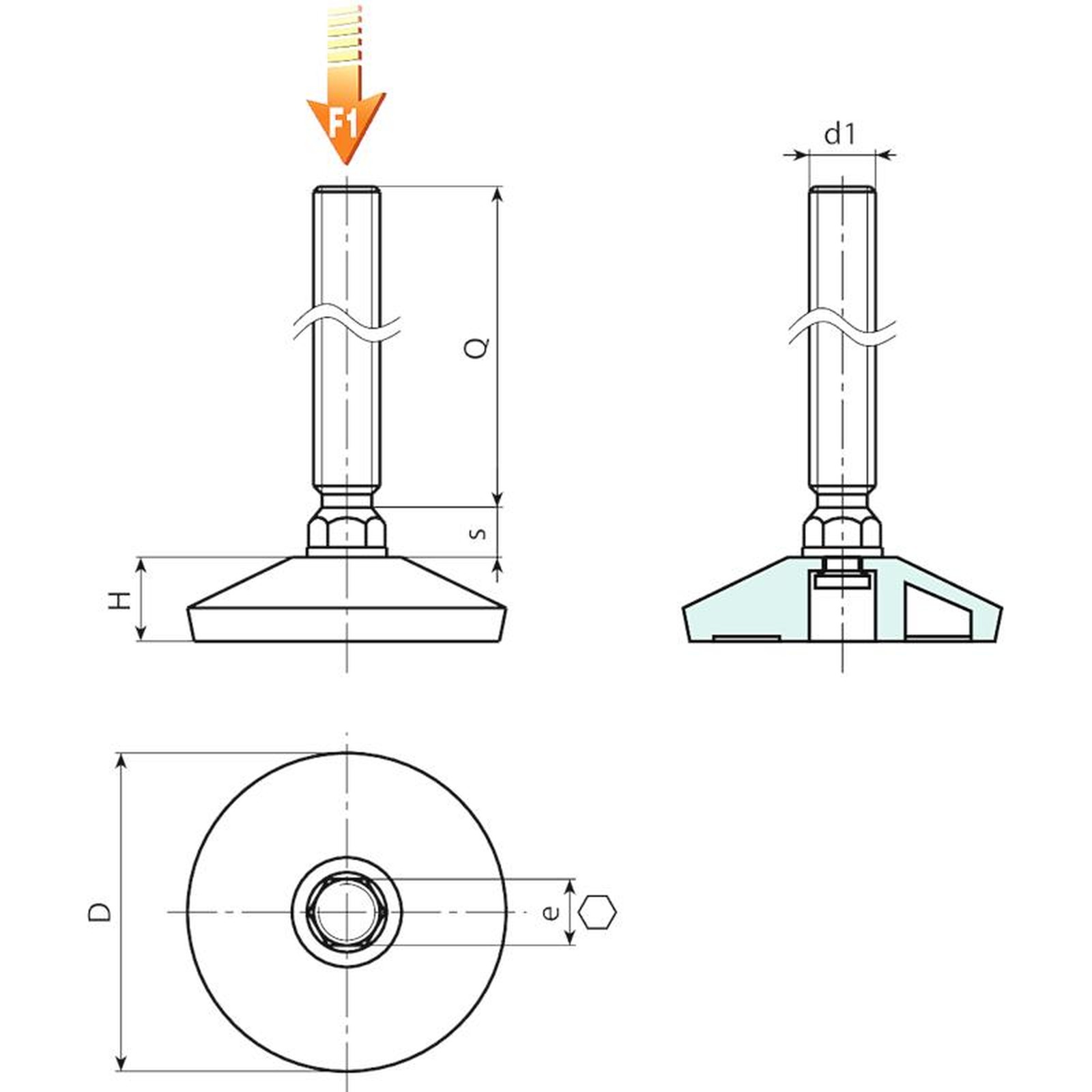 | Code | Art. | D | H | e | s | d1 6g | Q | Weight (g) | F1 (N) |
