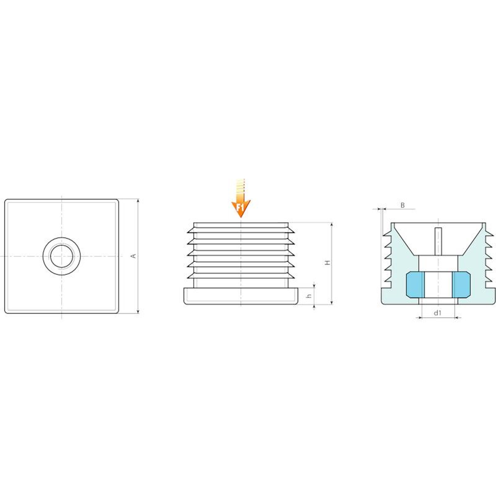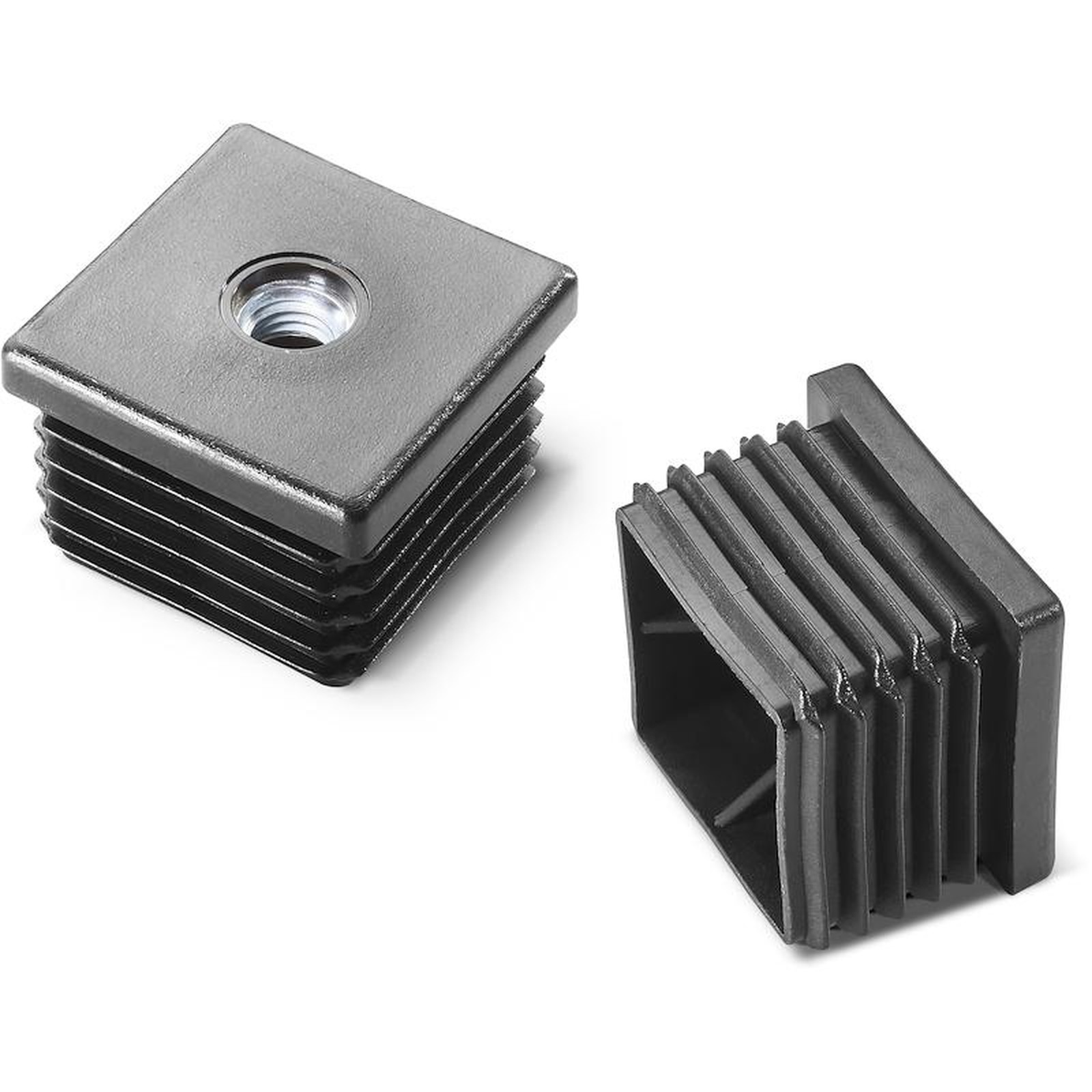 SQUARE PLUG FOR TUBE WITH INSERT WITH THREADED THROUGH HOLE (MEDIUM DUTY SERIES)
