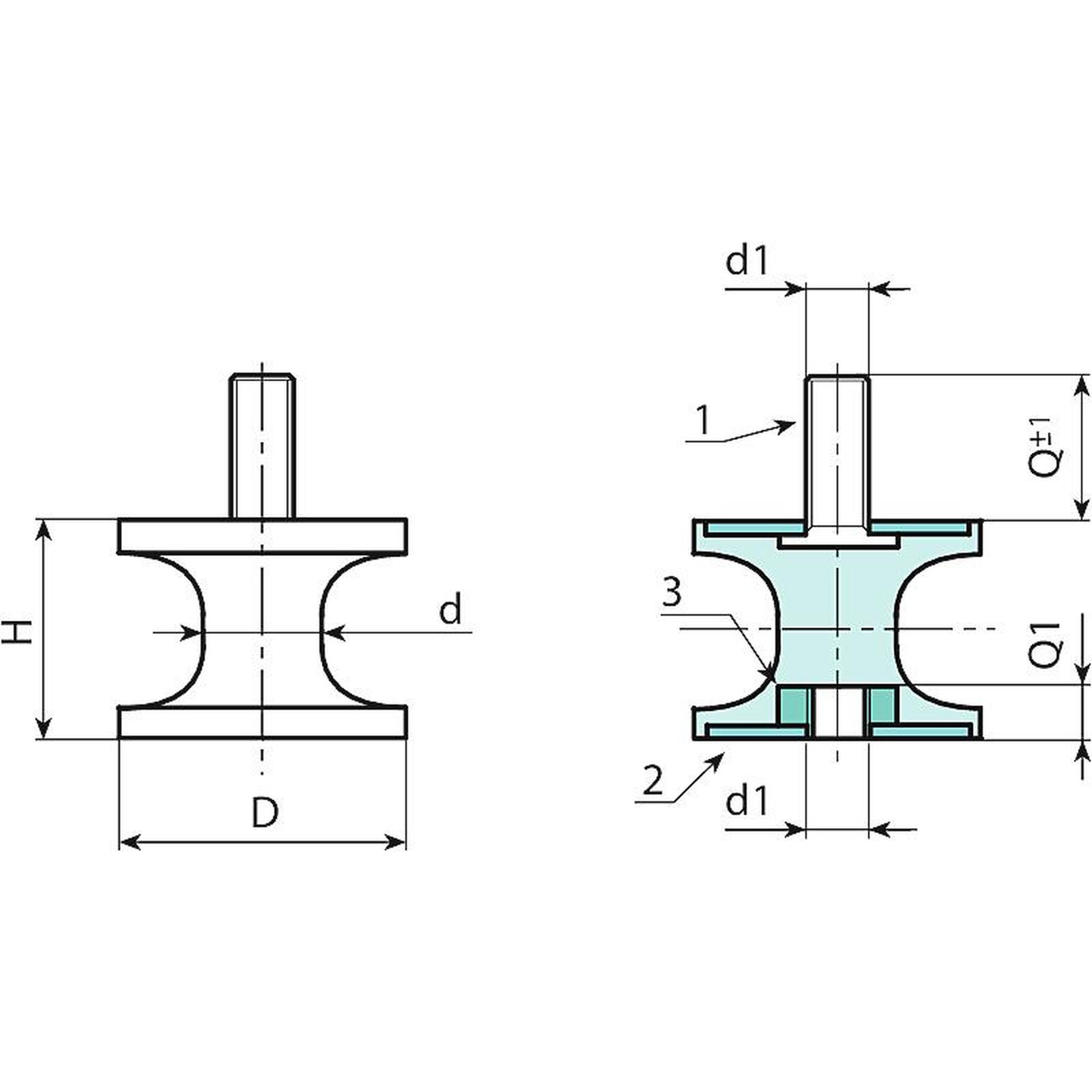 Upon request and for a minimum quantity of 100 pieces anti-vibration mounts can be supplied with hardness 45 or 70 Shore A.