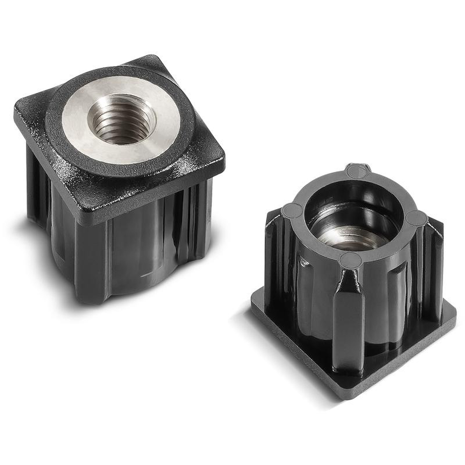 PLUG FOR SQUARE TUBE WITH INSERT WITH THREADED THROUGH HOLE (HEAVY DUTY SERIES)
