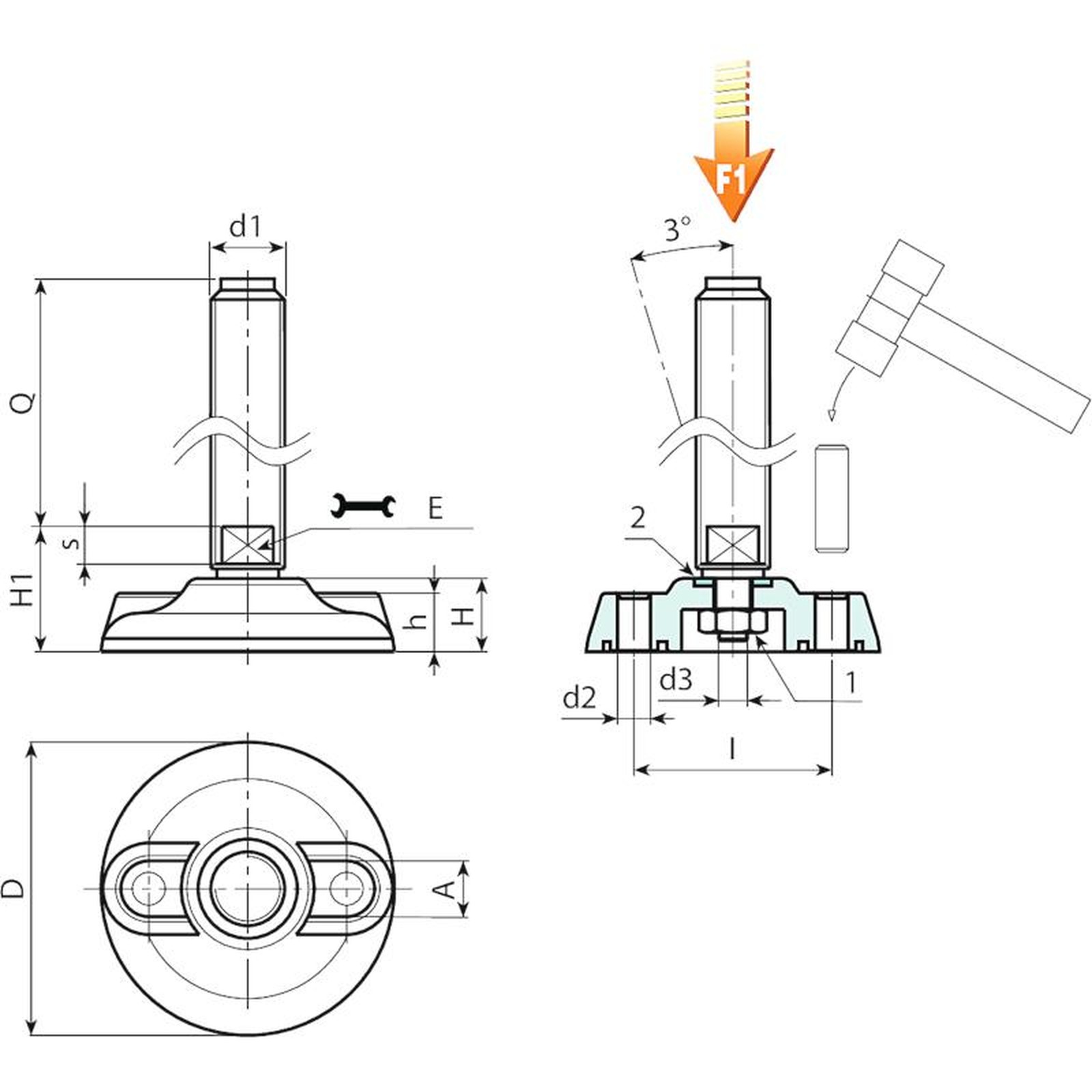 Attention: The expressed load limit F1 is lower than the break load by 30% and is intended as static.