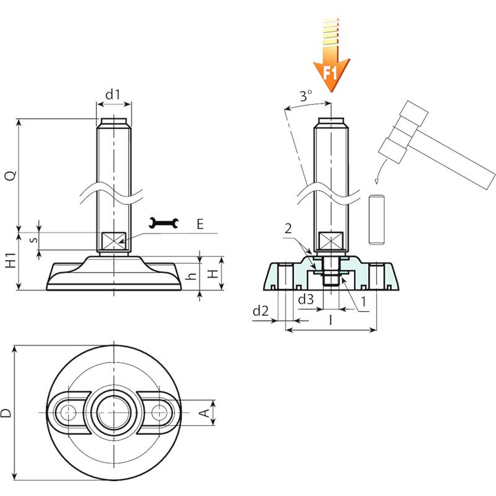 Attention: The expressed load limit F1 is lower than the break load by 30% and is intended as static.