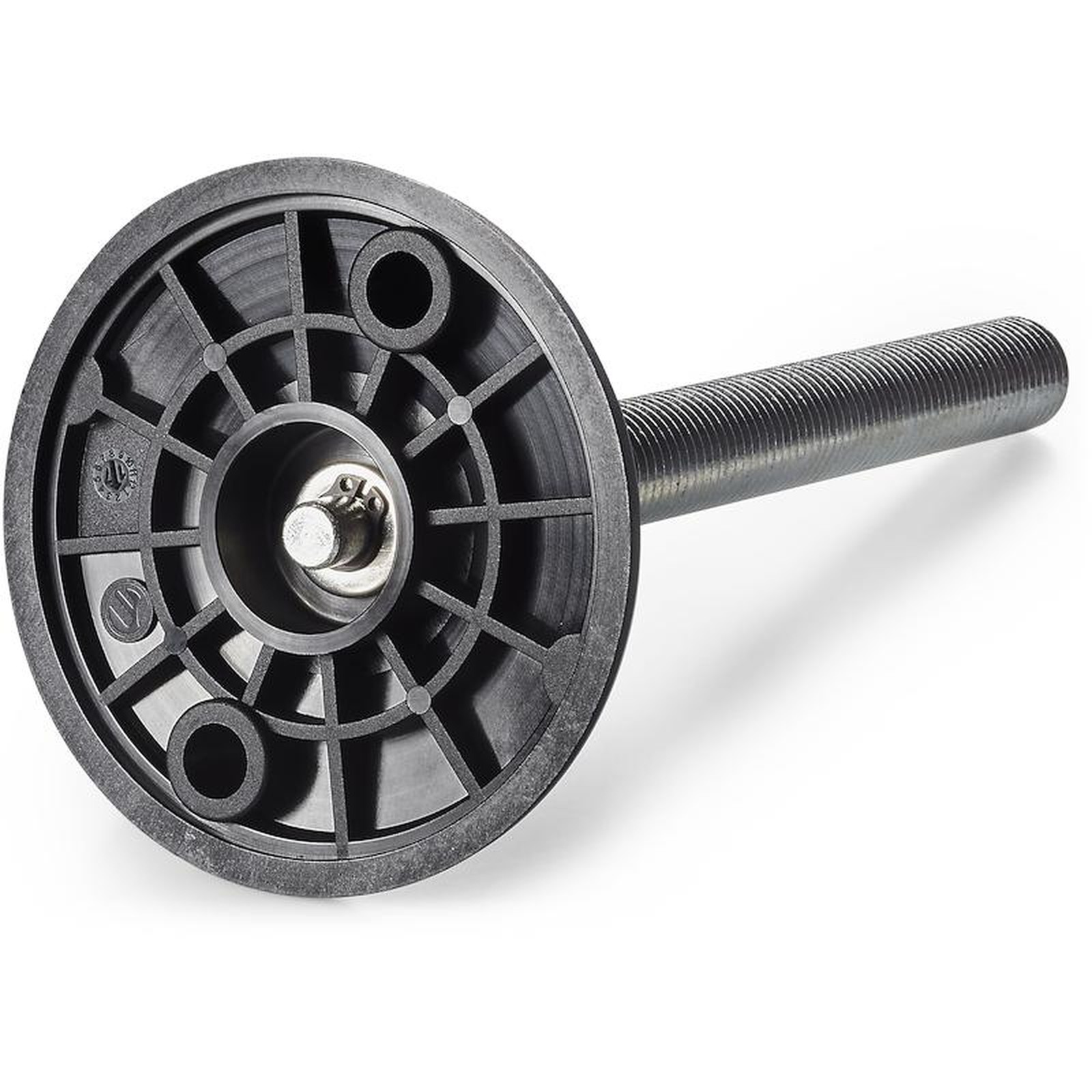 Galvanised steel non-articulated revolving threaded stem, fixed with a circlip.