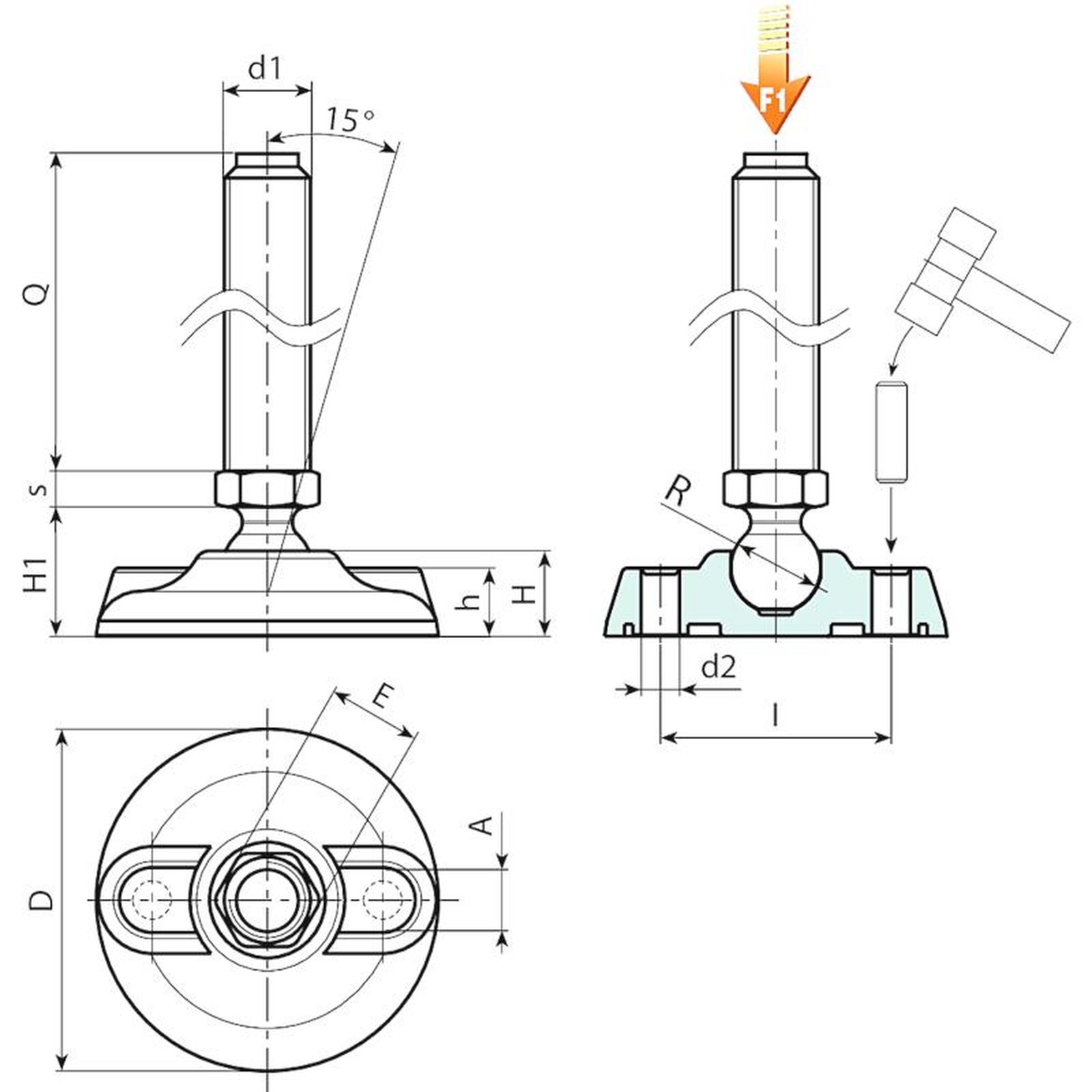 Attention: The expressed load limit F1 is lower than the break load by 30% and is intended as static.