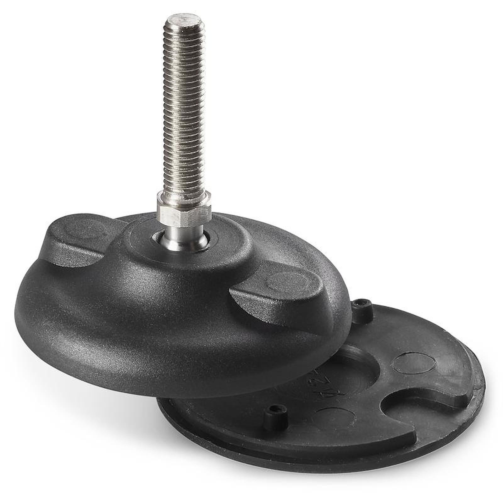 Plastic feet with floor-anchoring - articulated stem + non-slip base