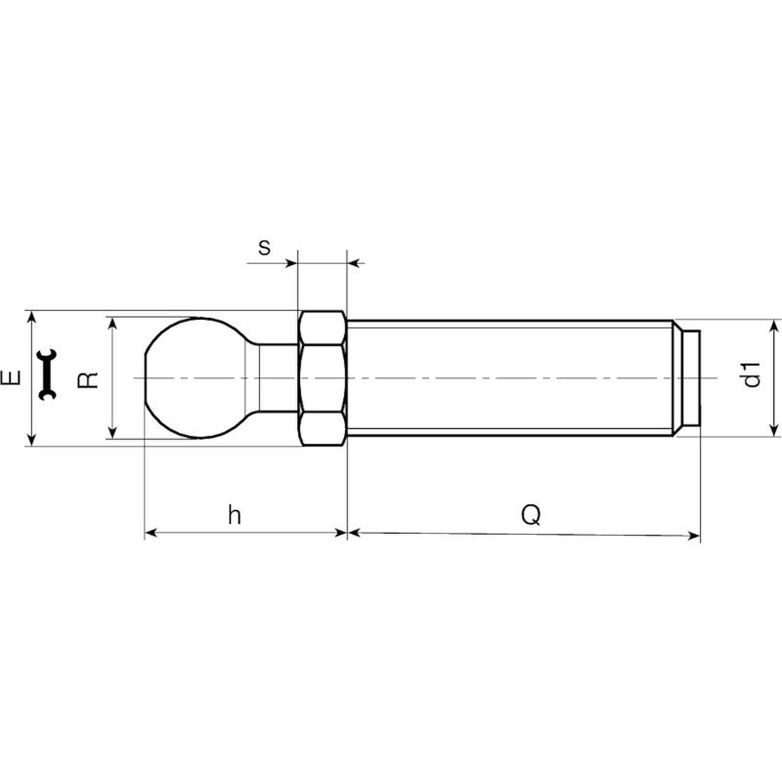| Code | Art. | E | s | h | R ±0,1 | d1 6g | Q | Q Max | Weight (g) |