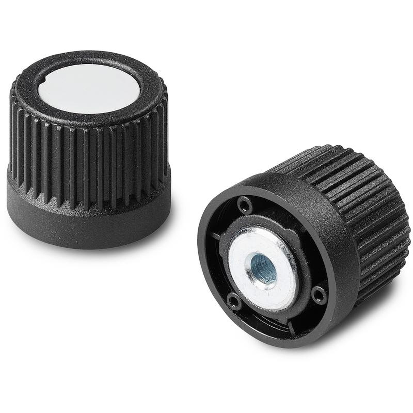 Control knobh with wide knurling suitable to be gripped with a full hand, to move, control and adjust machine axes with precision. The large knurling allows excellent grip both with and without gloves. Wrapping the entire palm of the hand, if it needs to impart force, or only with the fingers for small and precise movements. Prepared to be connected, with three screws, to its natural accessory such as the numbered flange (NFLAN). This flange can be black or gray and has different numbering gradations or just one reference mark. Designed to replace the more expensive ones in metal and aluminum. The insert hole has a small pilot diameter, but BOTECO is able, even on small batches, to customize this hole and adapt it to the customer's needs. To close this hole we find a convenient removable cap, available in different colors and easy to customize by pad printing. Product suitable for manual machine tools, drills, drilling machines, packaging machines, saws and hacksaws, packaging machines, food equipment. The N246 knurled sleeve is made of polyamide based materials reinforced with stabilizing additives, to ensure excellent flatness and circularity. This model is a basic version, but it can be requested in different variants such as the Knurled control knob with lock system, the indexed steel control knob, or the control knob with a continuously variable movement, etc.).