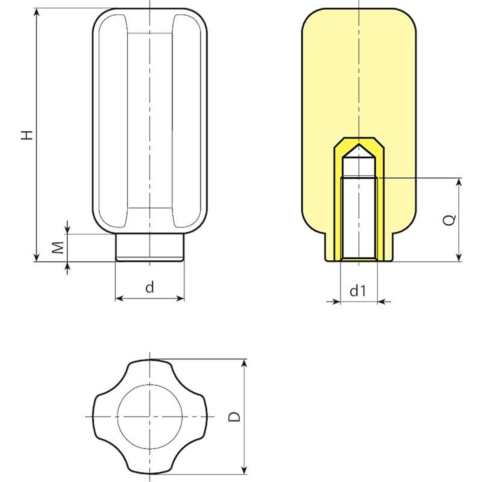 | Code | Art. | D | H | M | d | d1 6H | Q | Weight (g) |