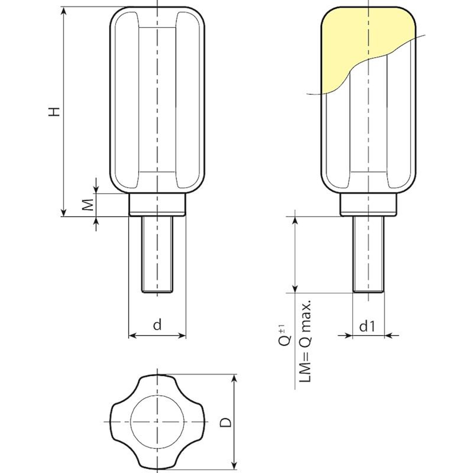 | Code | Art. | D | H | M | d | LM | d1 6g | Q | Weight (g) |
