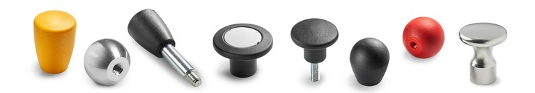 Classic handgrips used in endless applications: ball knobs, short knobs and gear stick knobs. The main range features plastic articles, with the addition of some metal models. Available with threaded holes in the plastic or with quick push-fit. Holes, threaded studs and inserts can be customized to customer’s requirements. Some models have been updated with a more modern design featuring a coloured cap. For detailed information on the specifications of each individual product please consult the technical sheet.