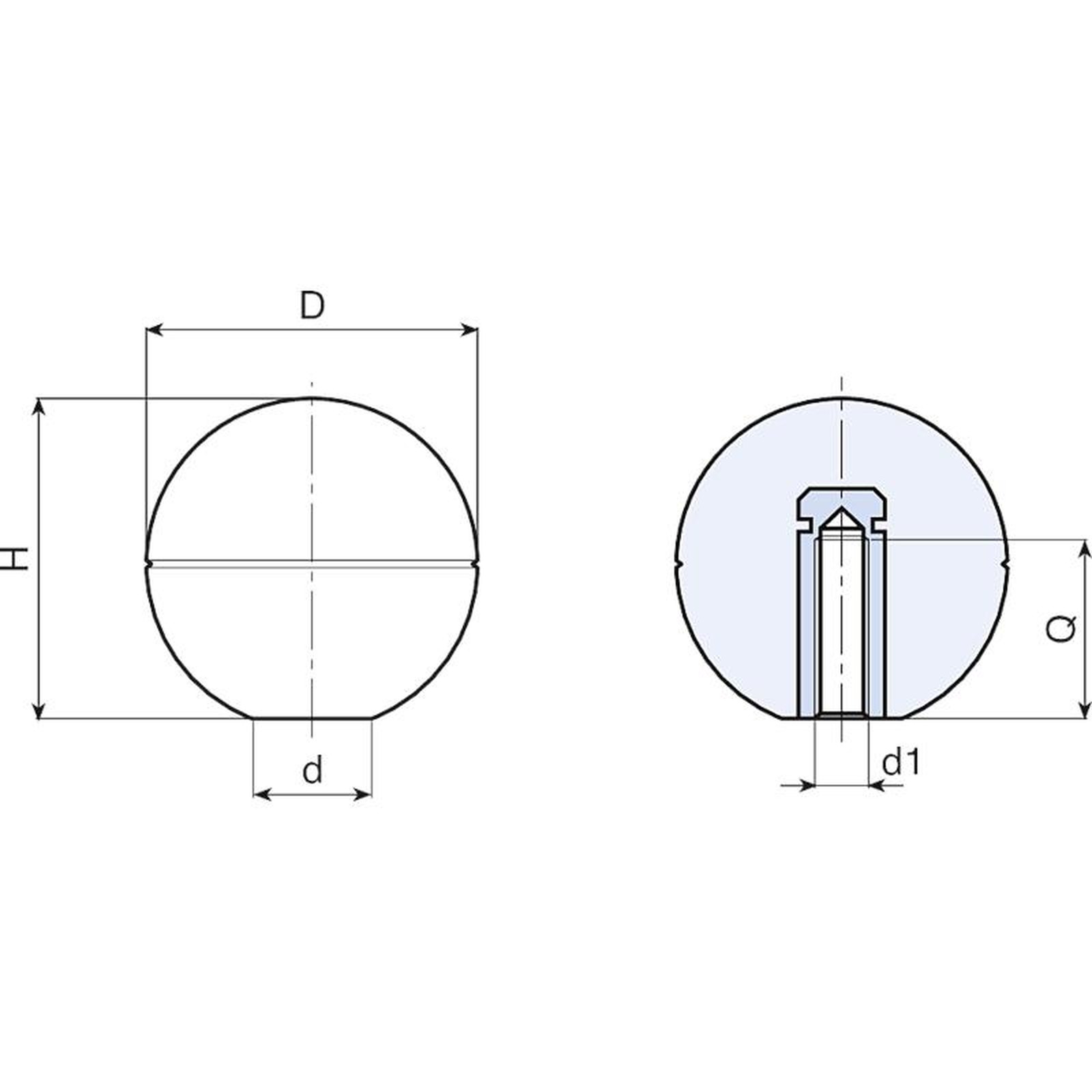 | Code | art. | D | H | d | d1 6H | Q | Weight (g) |