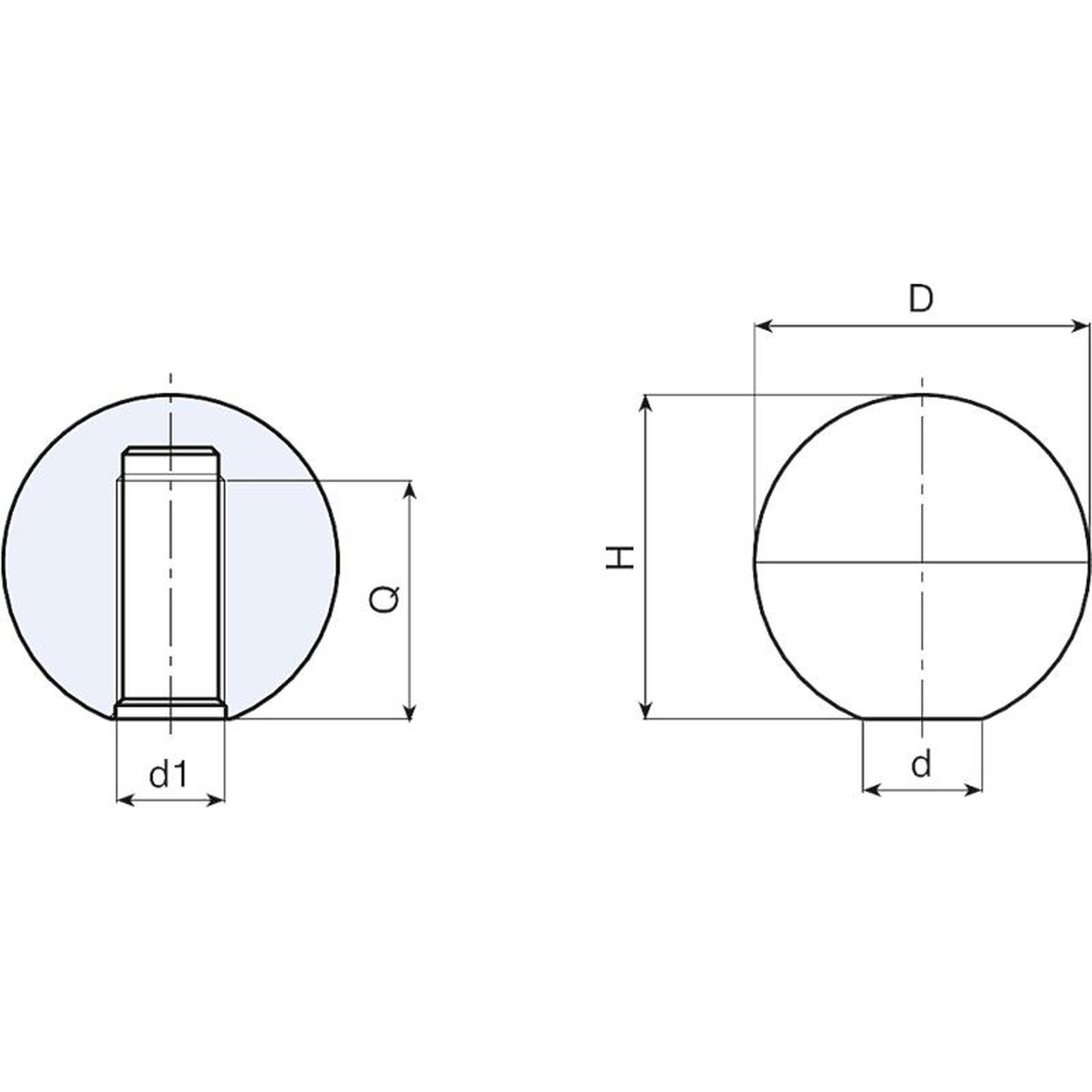 | Code | art. | D | H | d | d1 | Q | Weight (g) |