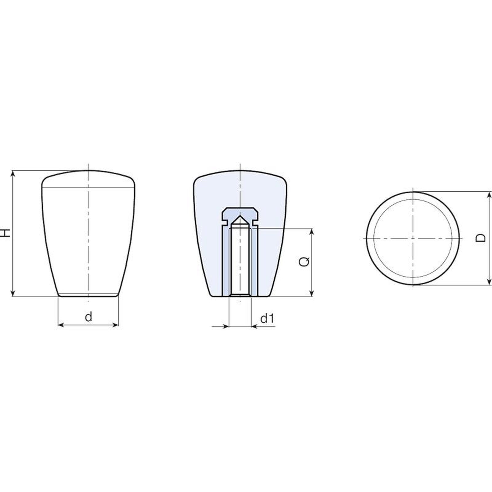 | Code | art. | D | H | d | d1 6H | Q | Weight (g) |