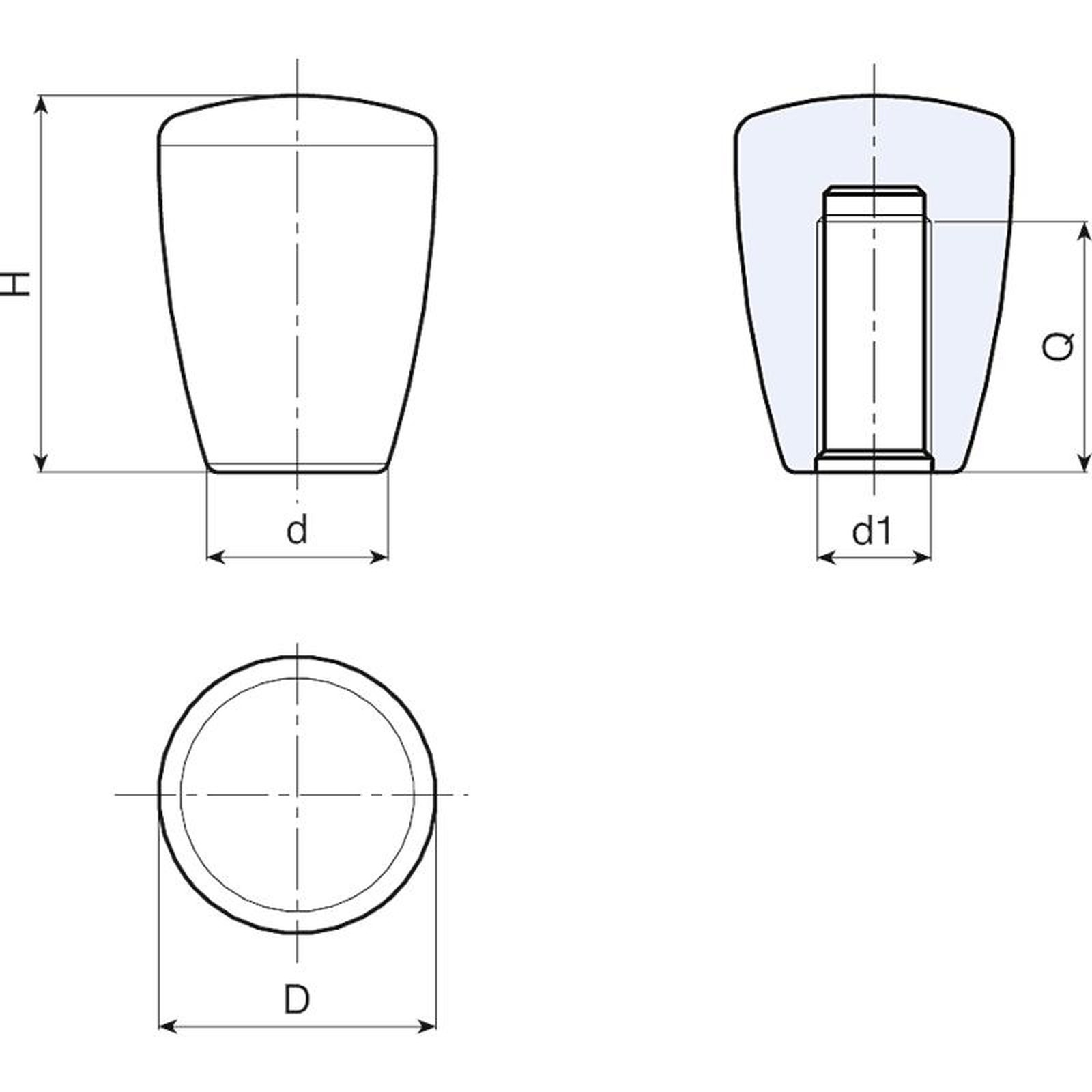 | Code | art. | D | H | d | d1 | Q | Weight (g) |
