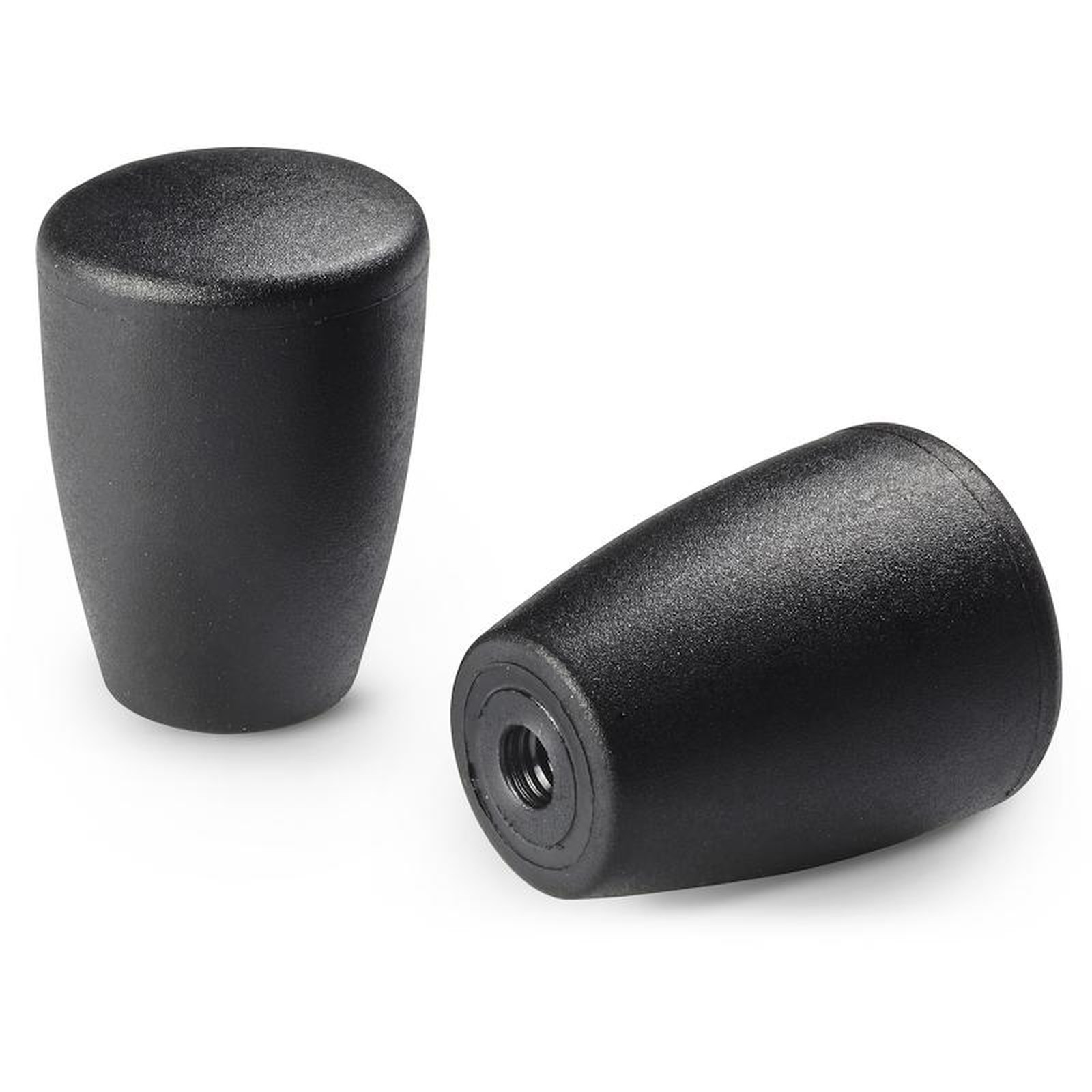 La Botticella con foro filettato su plastica, è un grande classico delle impugnature di Boteco. Derivata dai primi articoli creati in Bakelite, la attuale Botticella ha lo stesso design tutto solido ma è prodotta con un materiale termoplastico. Di qui la possibilità di creare il foro filettato direttamente sulla plastica, offrendo il vantaggio di avere un prodotto senza nessuna parte metallica ( vedi ambienti molto corrosivi come il settore marino). Prodotto ideato come finale di leve in metallo o come pomello per sollevare ( per esempio ante di ispezione su macchinari, coperchi di tramogge o dosatori). Il suo design senza fori o recessi lo rende adatto soprattutto per settori alimentari e medicali. La Botticella con foro filettato su plastica I108 è fatta con materiali a base di poliammide rinforzata. Disponibile in diverse versioni e modelli (Botticella con inserto fielttato, Botticella con perno, Botticella “Euromodel” con vari inserti, Botticella con braccio per leva, ecc.).