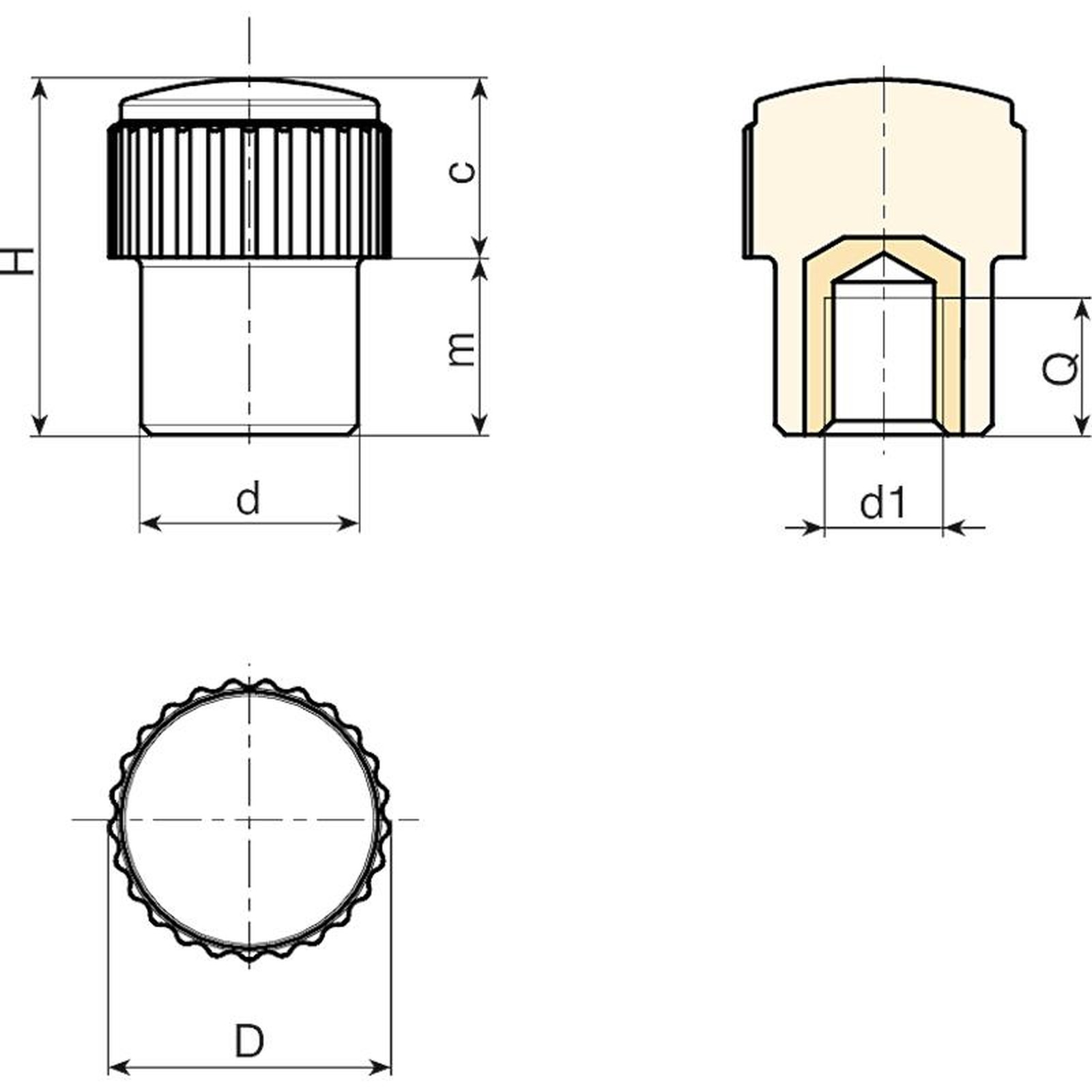 | Code | art. | D | H | d | d1 6H | Q | Weight (g) |