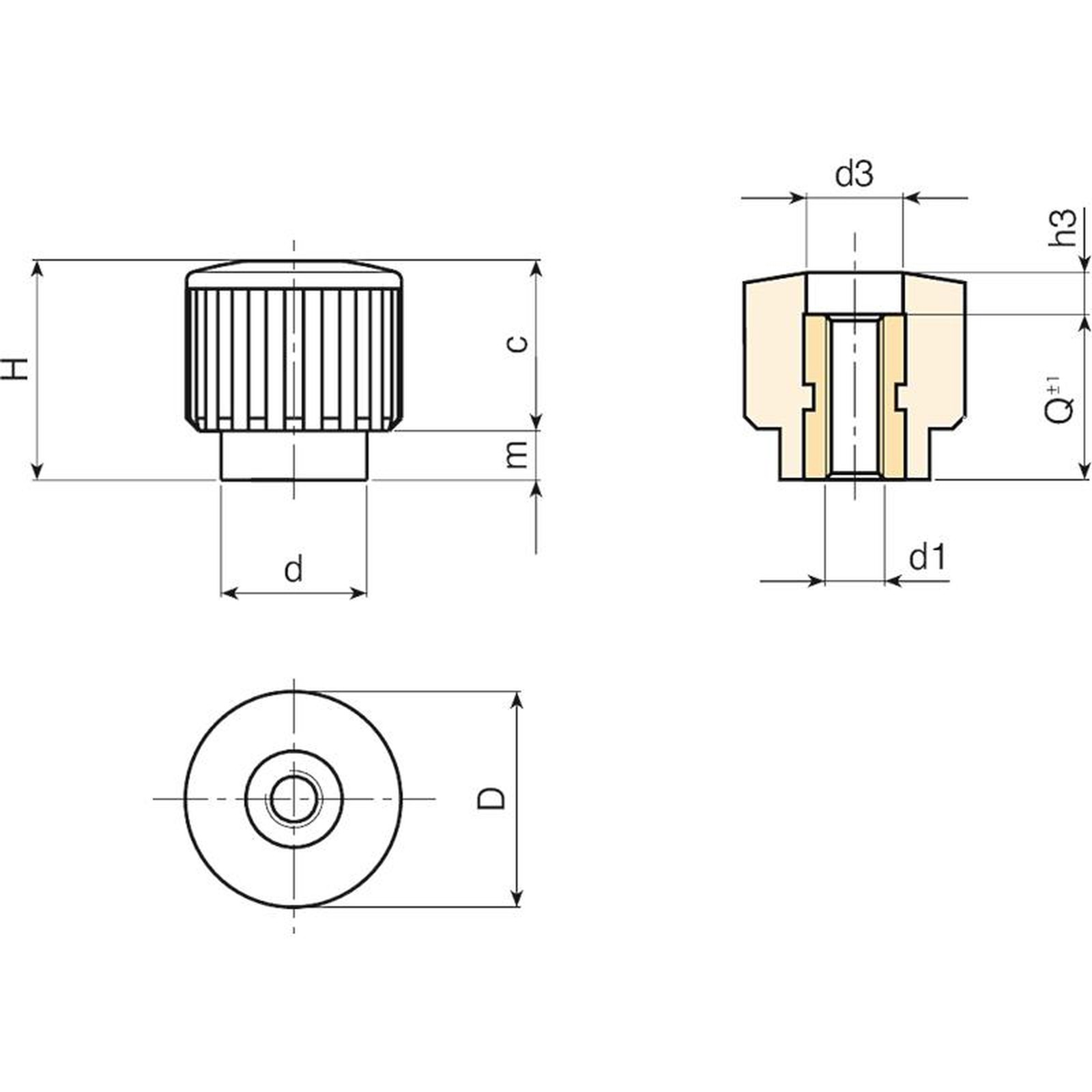 | Code | art. | D | H | d | m | c | d3 | h3 | d1 6H | Q | Weight (g) |